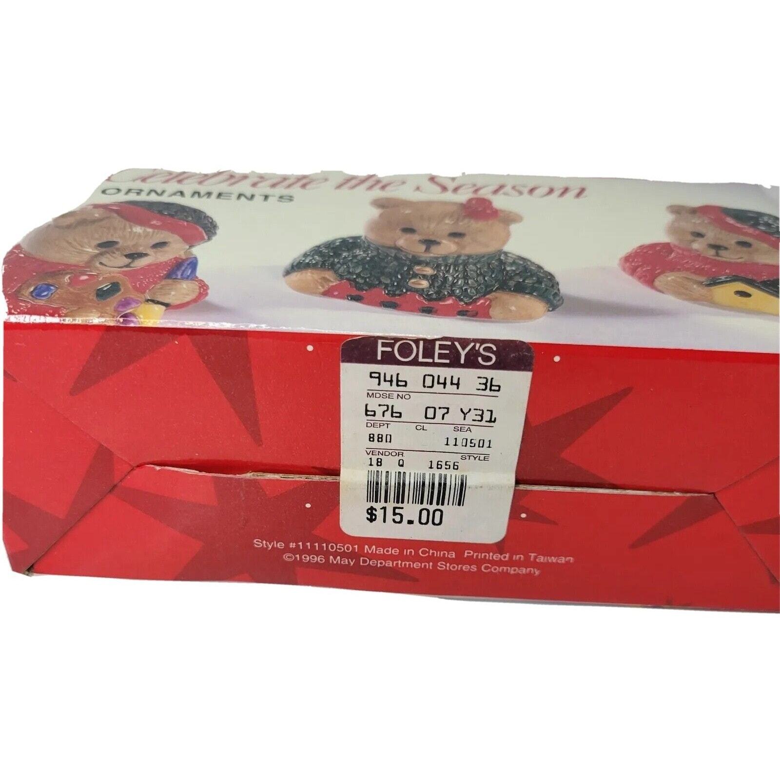 VTG Bear Bell Ornaments Celebrate The Season set of 3 hand decorated ceramic