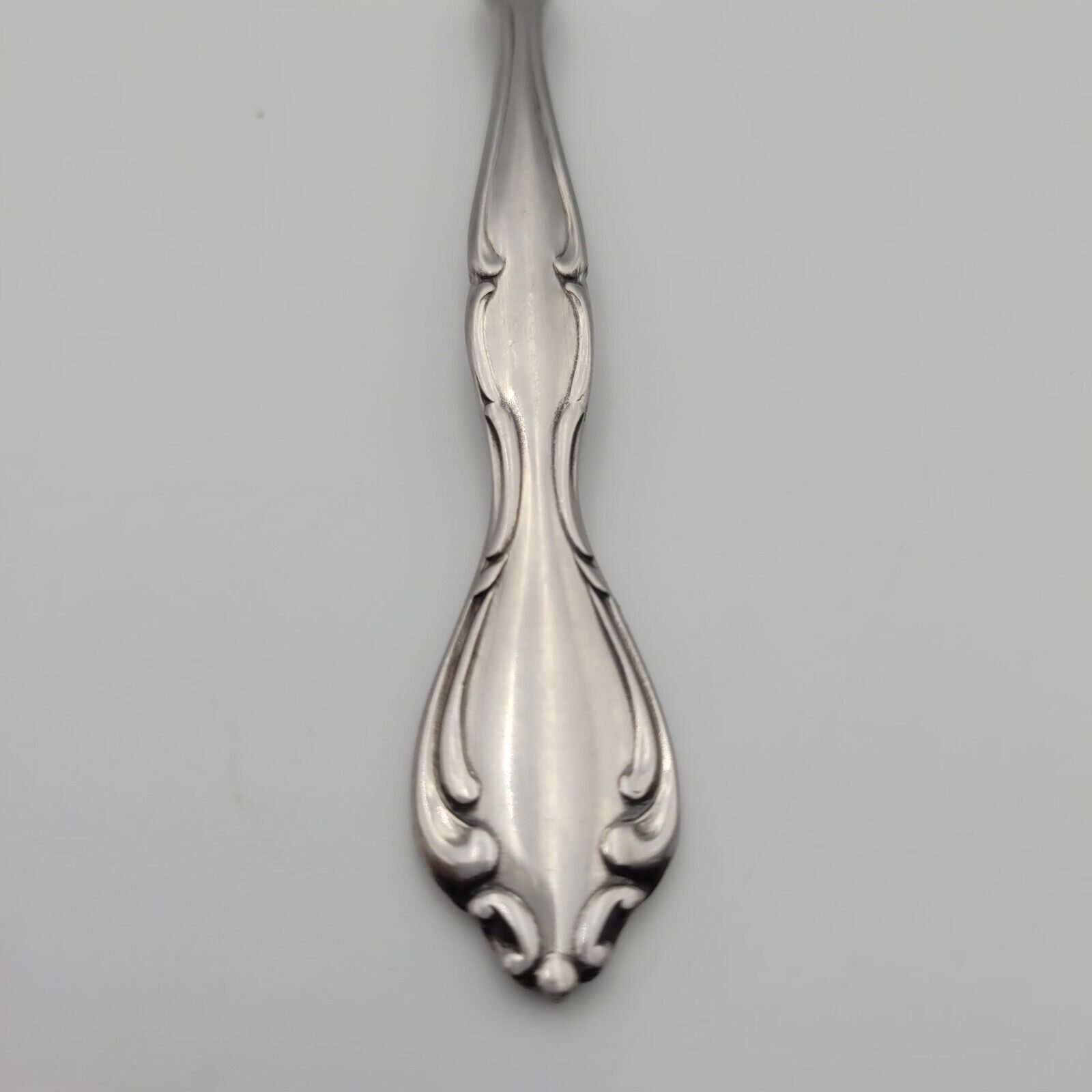 This Oneida Cantata butter knife is a perfect addition to your cutlery collection. Made of high-quality stainless steel, it features a glossy finish with a beautiful scroll outline design. The knife measures 6 3/8 inches and is retired, making it a valuable piece for collectors. The brand name, Oneida, is well-known for their quality products. This knife is perfect for spreading butter or jam on toast or muffins. Add it to your daily use or display it as a collector's item.