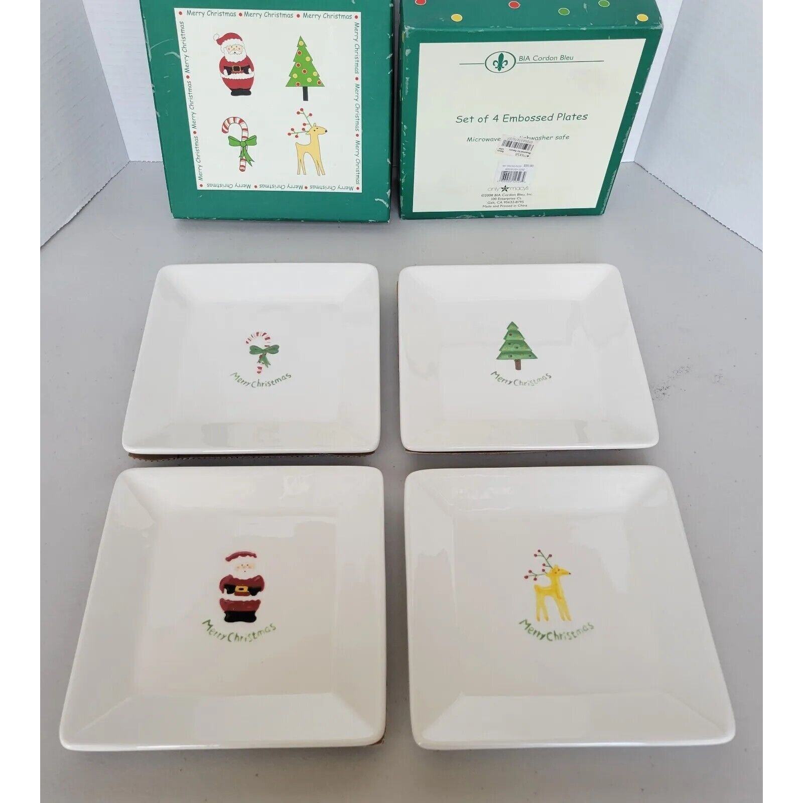 Christmas plates set of four, Square shape 7? Bia Cordon Blue Embossed plates. FAST PROCESSING AND SHIPPING ? EXCELLENT CONDITION