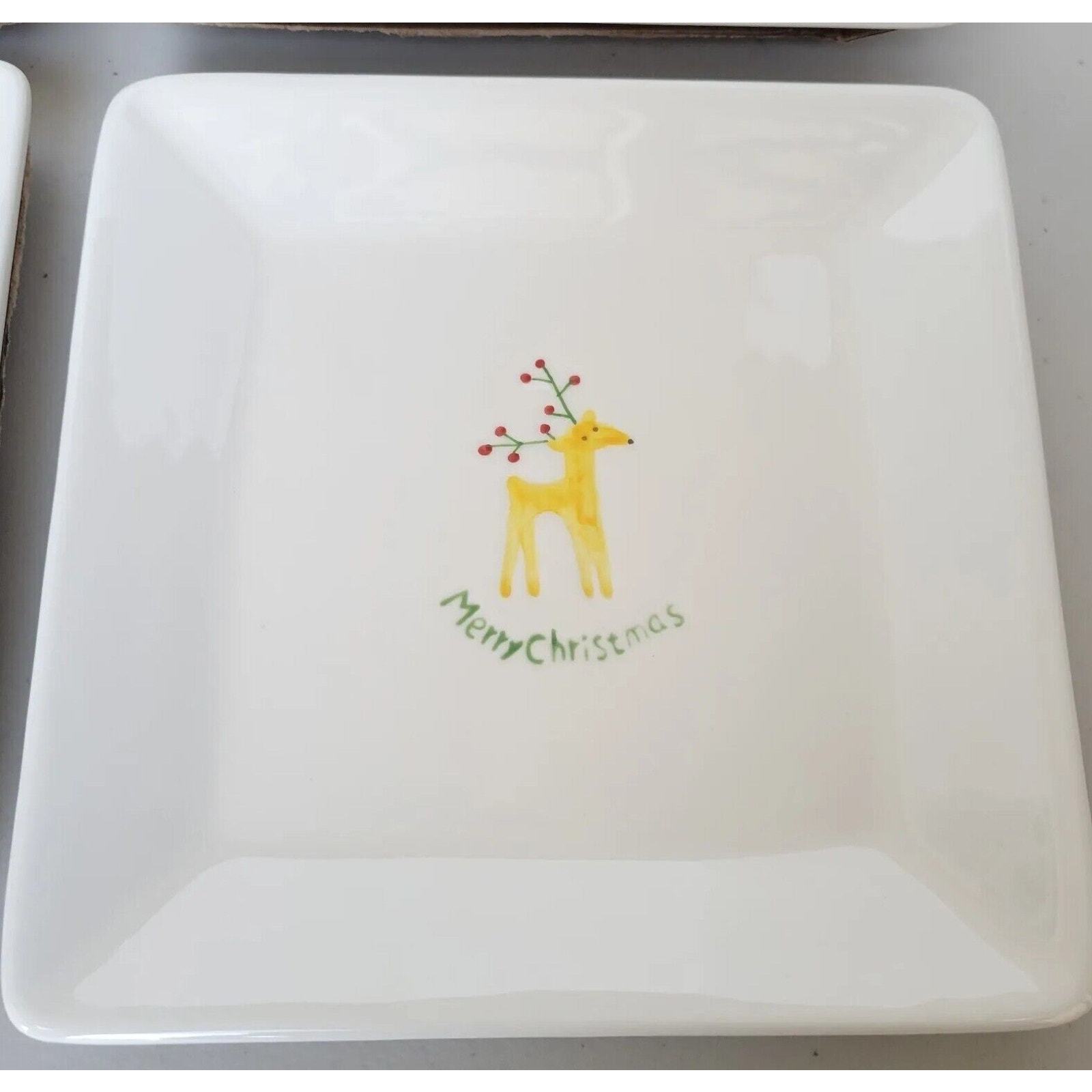 Christmas plates set of four, Square shape 7” Bia Cordon Blue Embossed plates