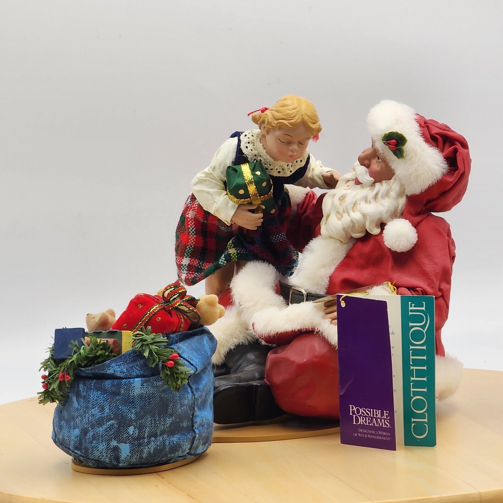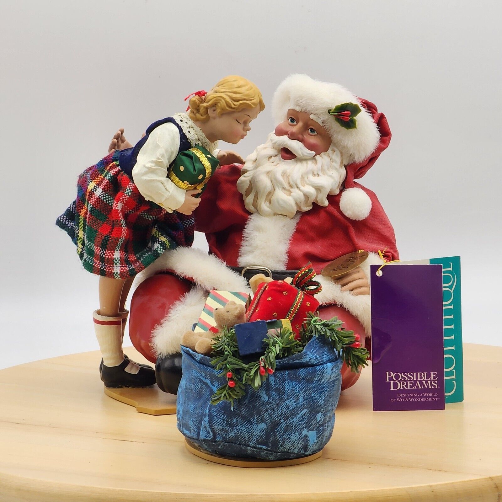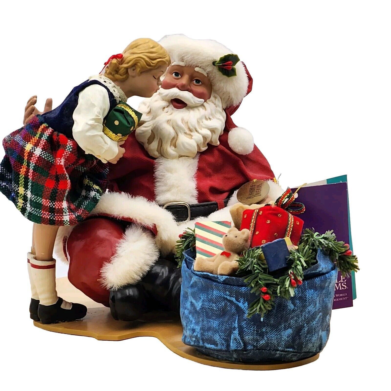 Possible Dreams Clothtique Merry Kissmas Musical Girl Kissing Santa 2001 W/ Tags