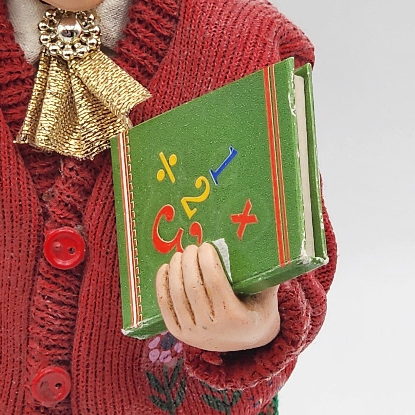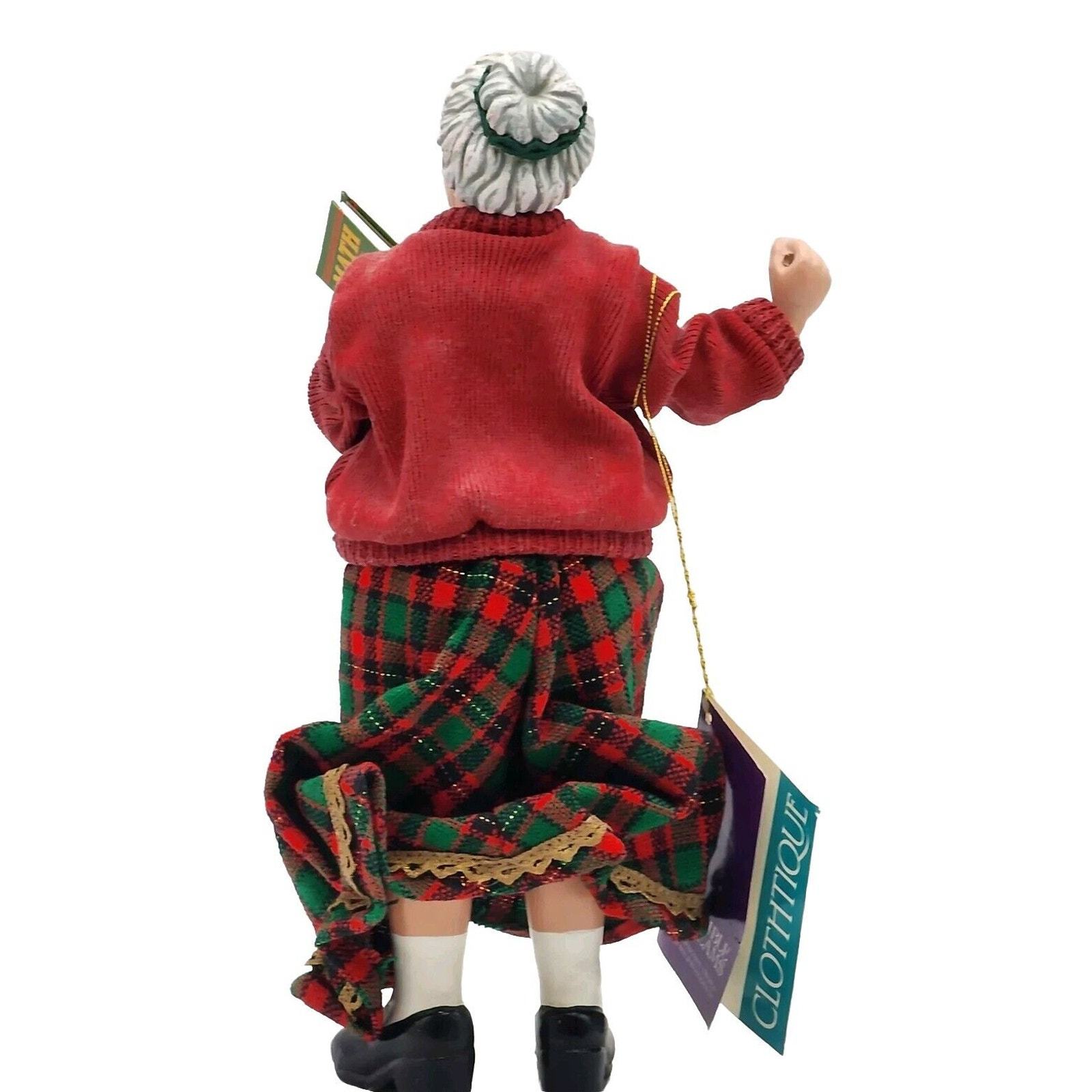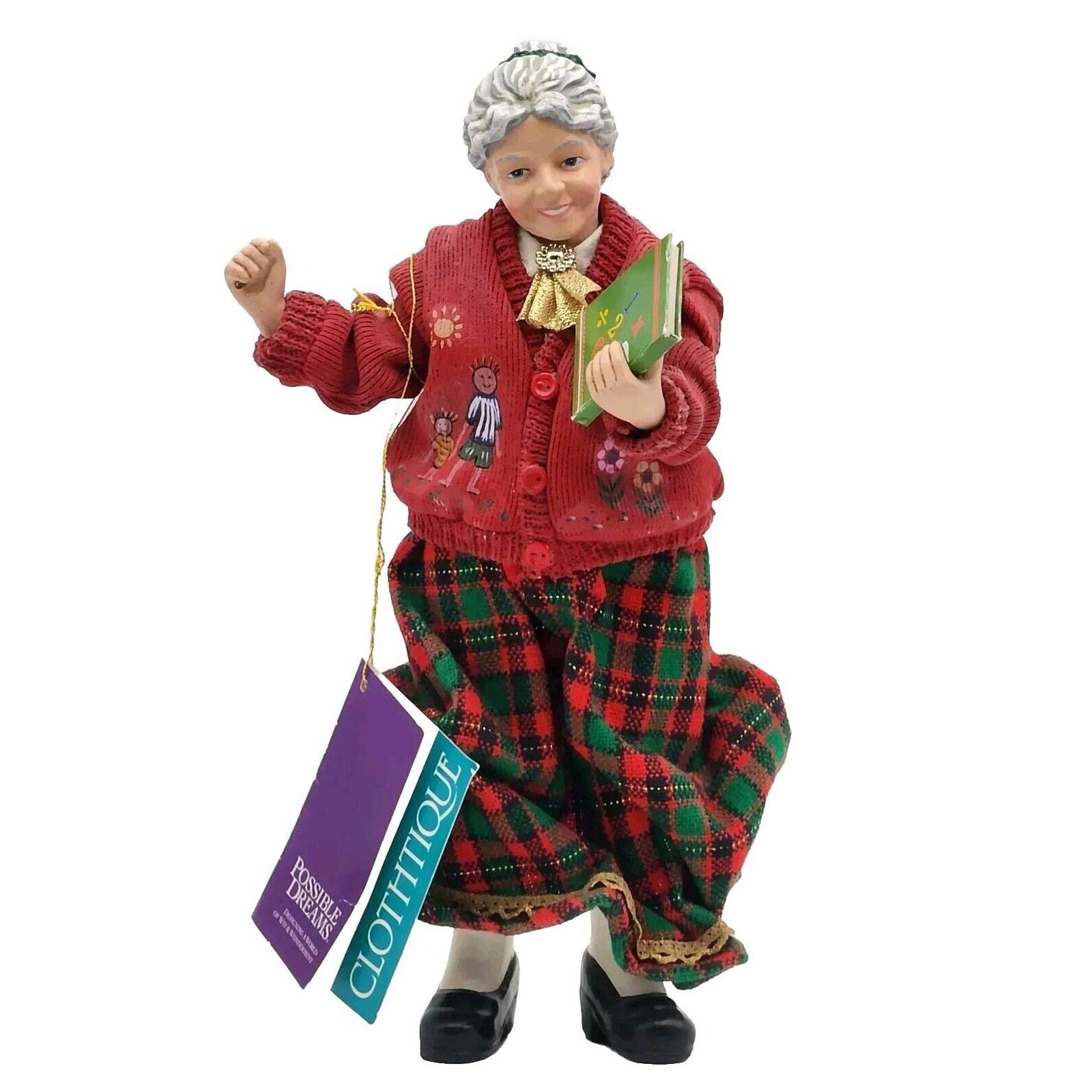 This vintage 2-piece set from Possible Dreams Clothique is perfect for any Christmas decorator looking to add a touch of nostalgia to their home. The set includes a teacher figurine and a chalkboard, adorned with original tags. The figurine features a teacher in a classic American style, while the chalkboard display showcases a sweet holiday math problem.