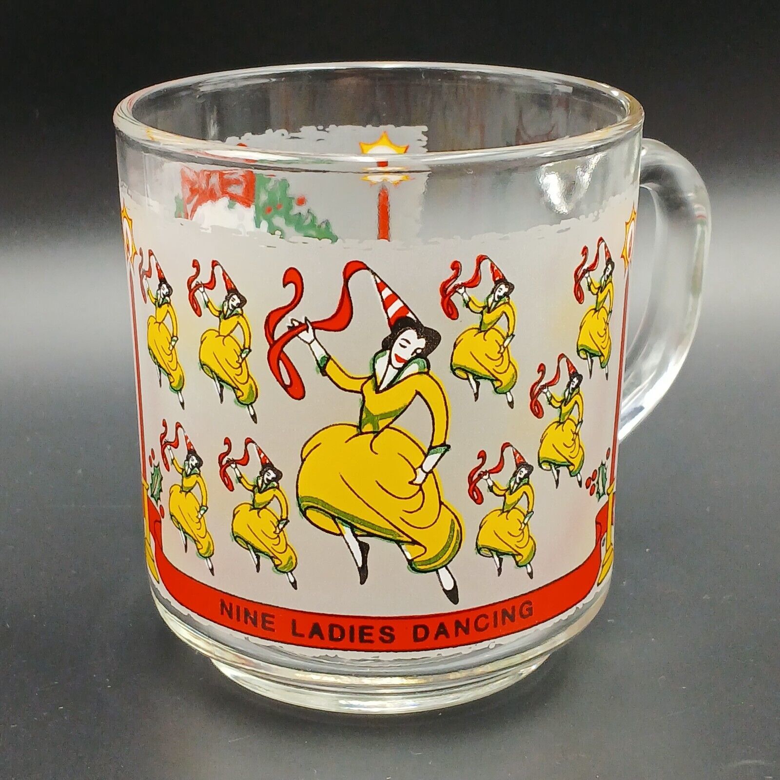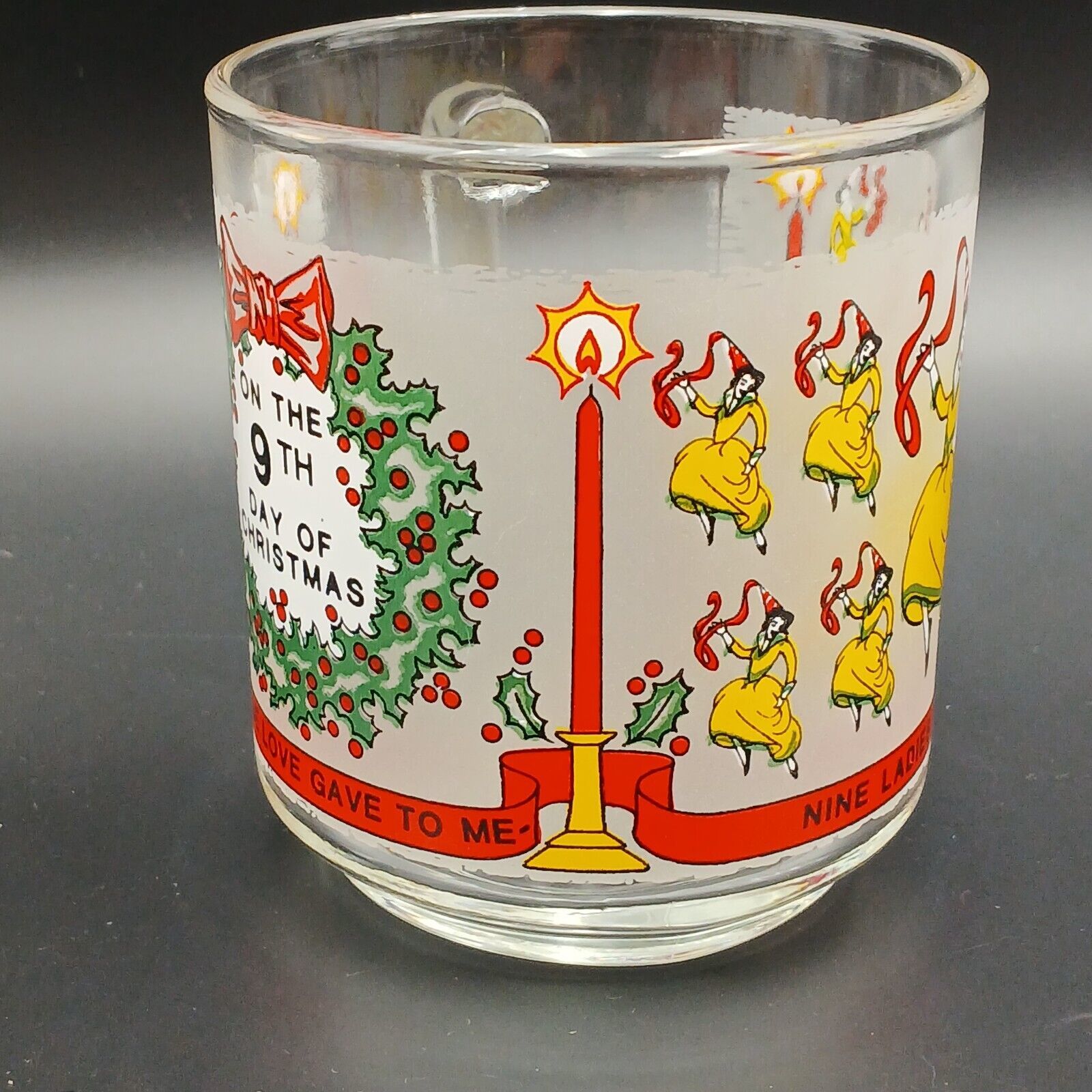 Vtg Twelve Days of Christmas Glass Mug Nine Ladies Dancing 9th Day of Christmas