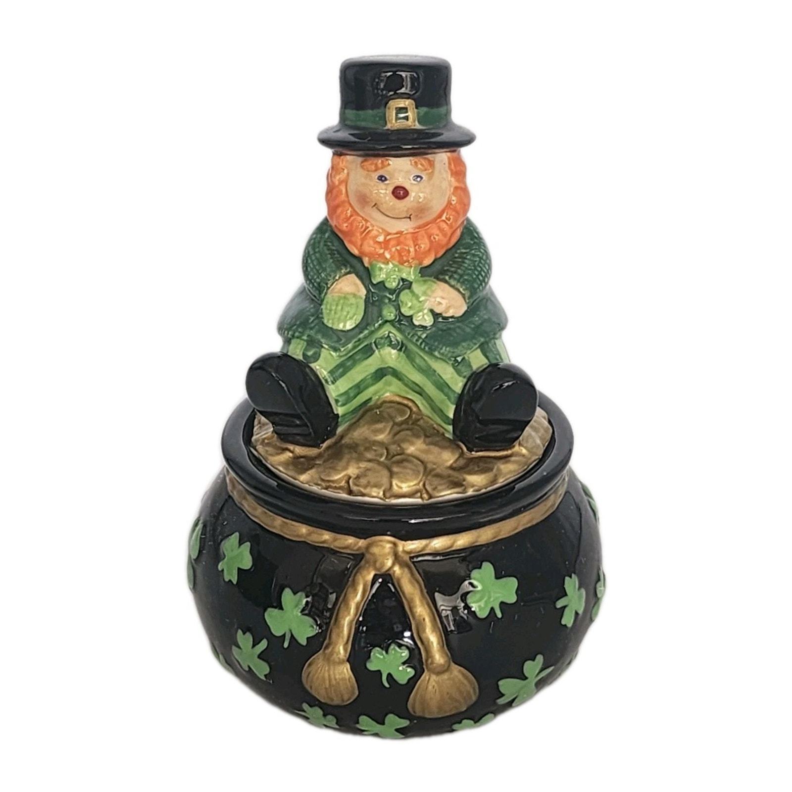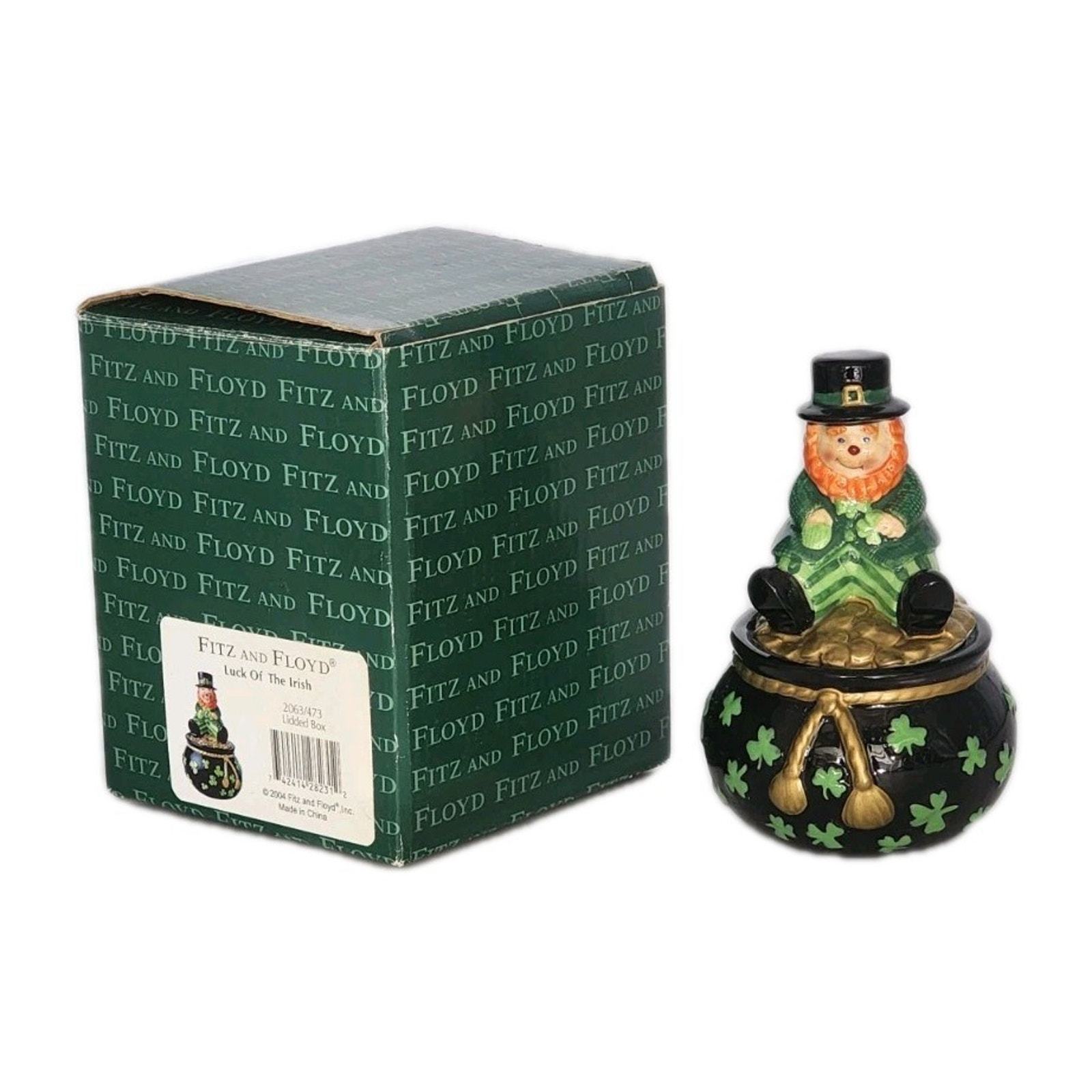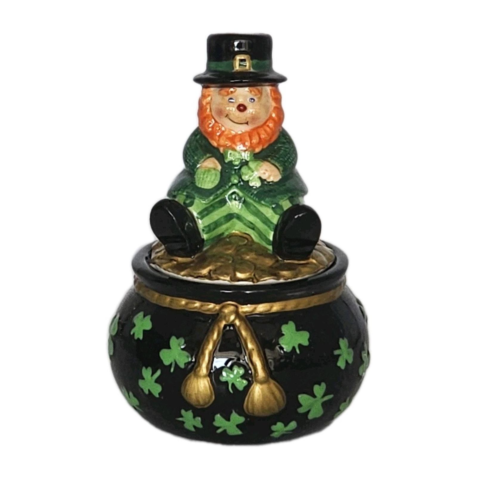 Fitz And Floyd Luck Of The Irish Lidded Trinket Box Leprechaun Figurine In Box