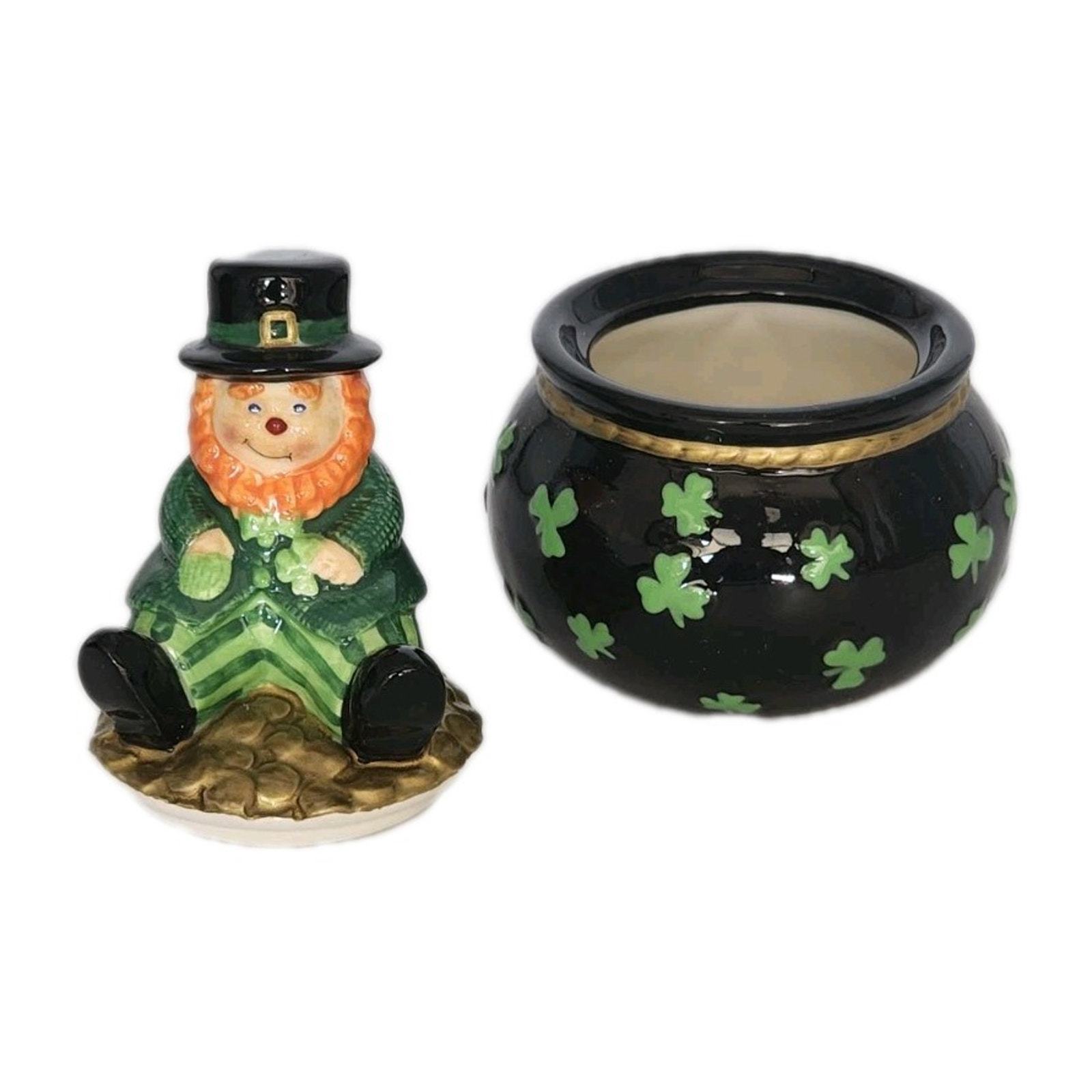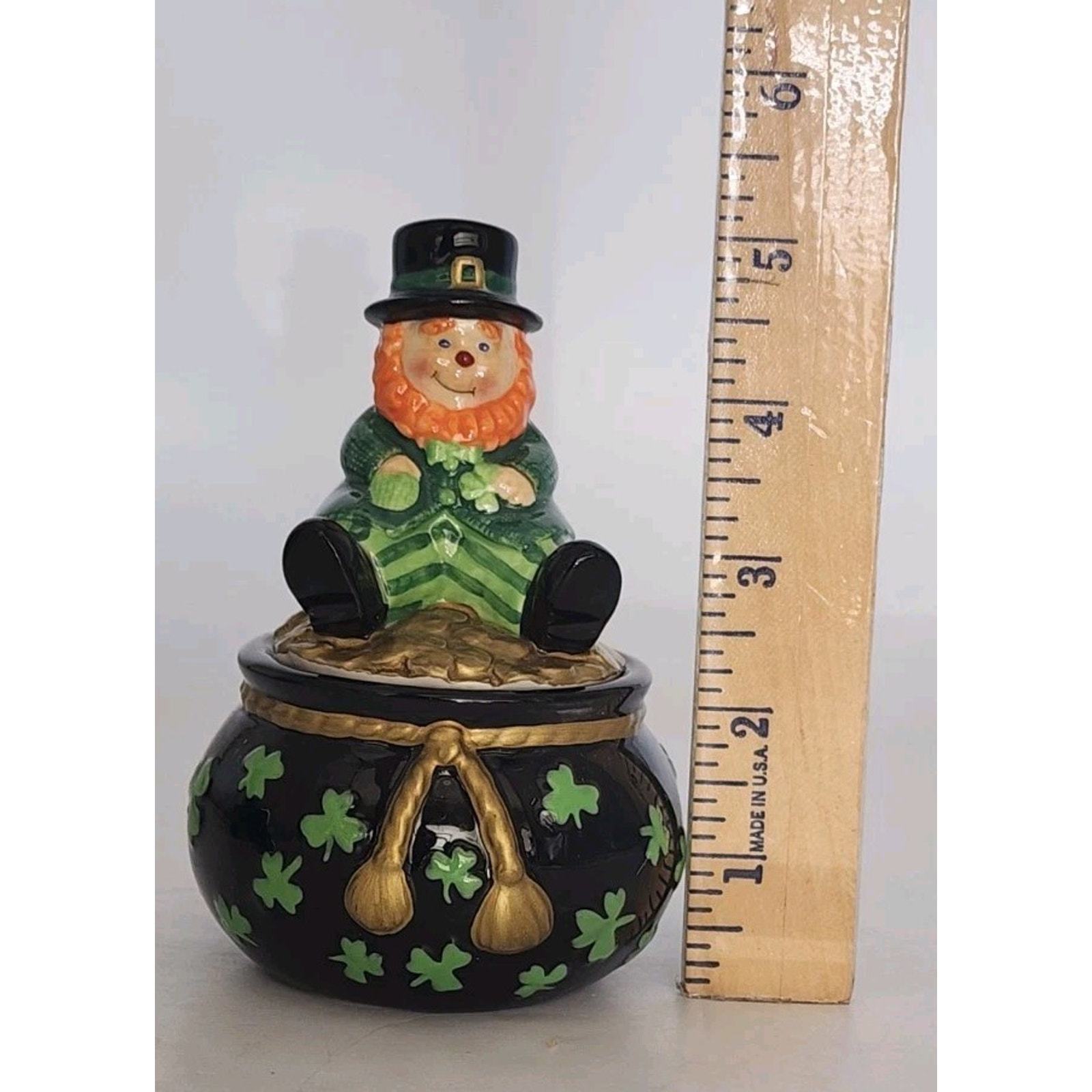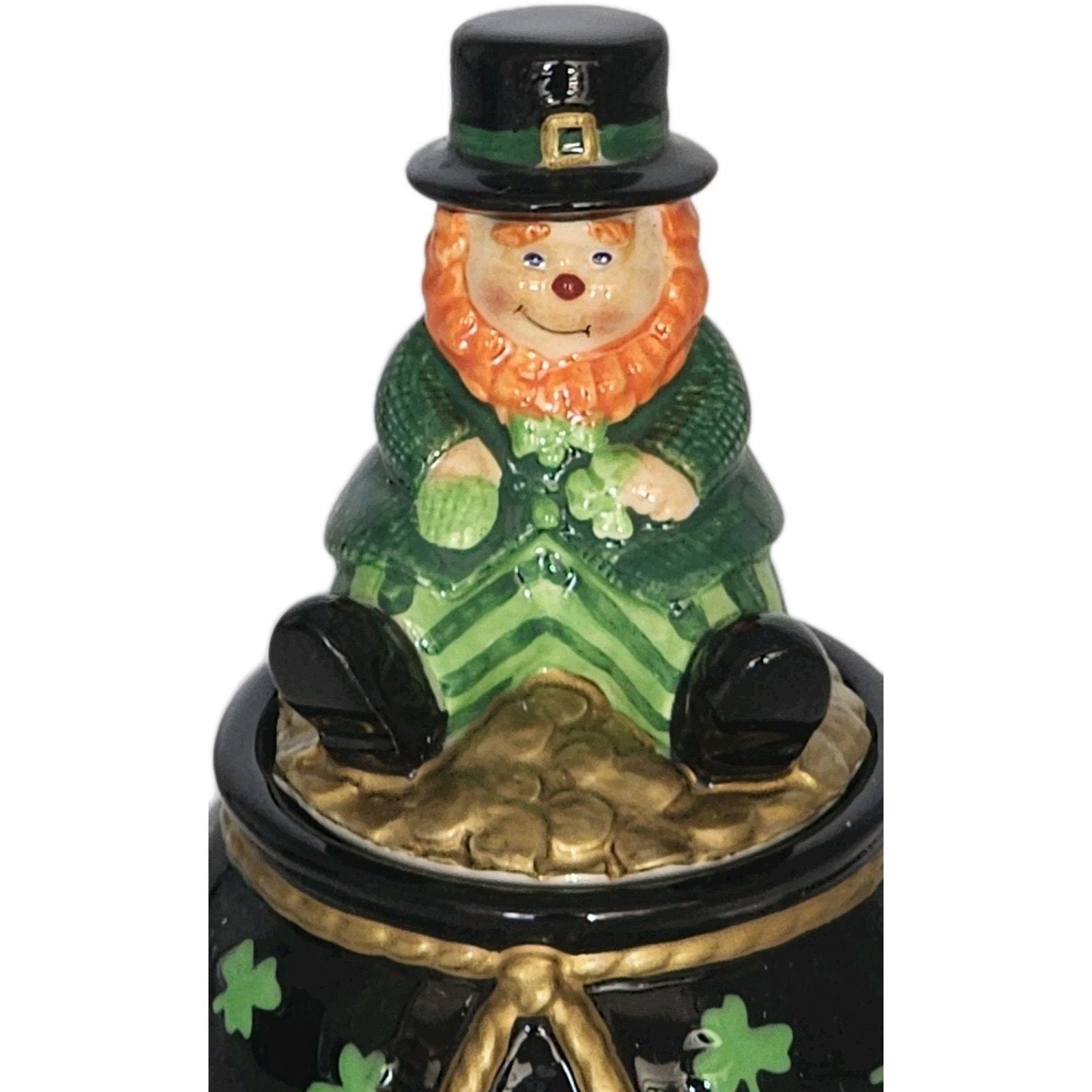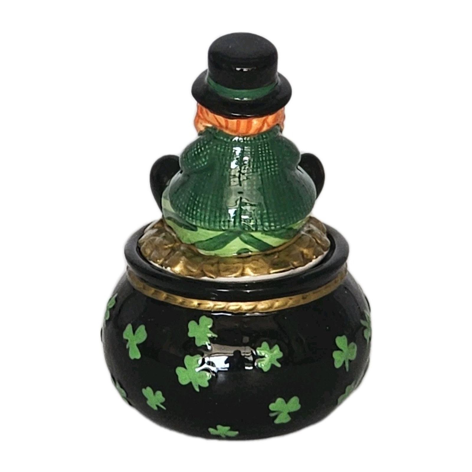 Fitz And Floyd Luck Of The Irish Lidded Trinket Box Leprechaun Figurine In Box