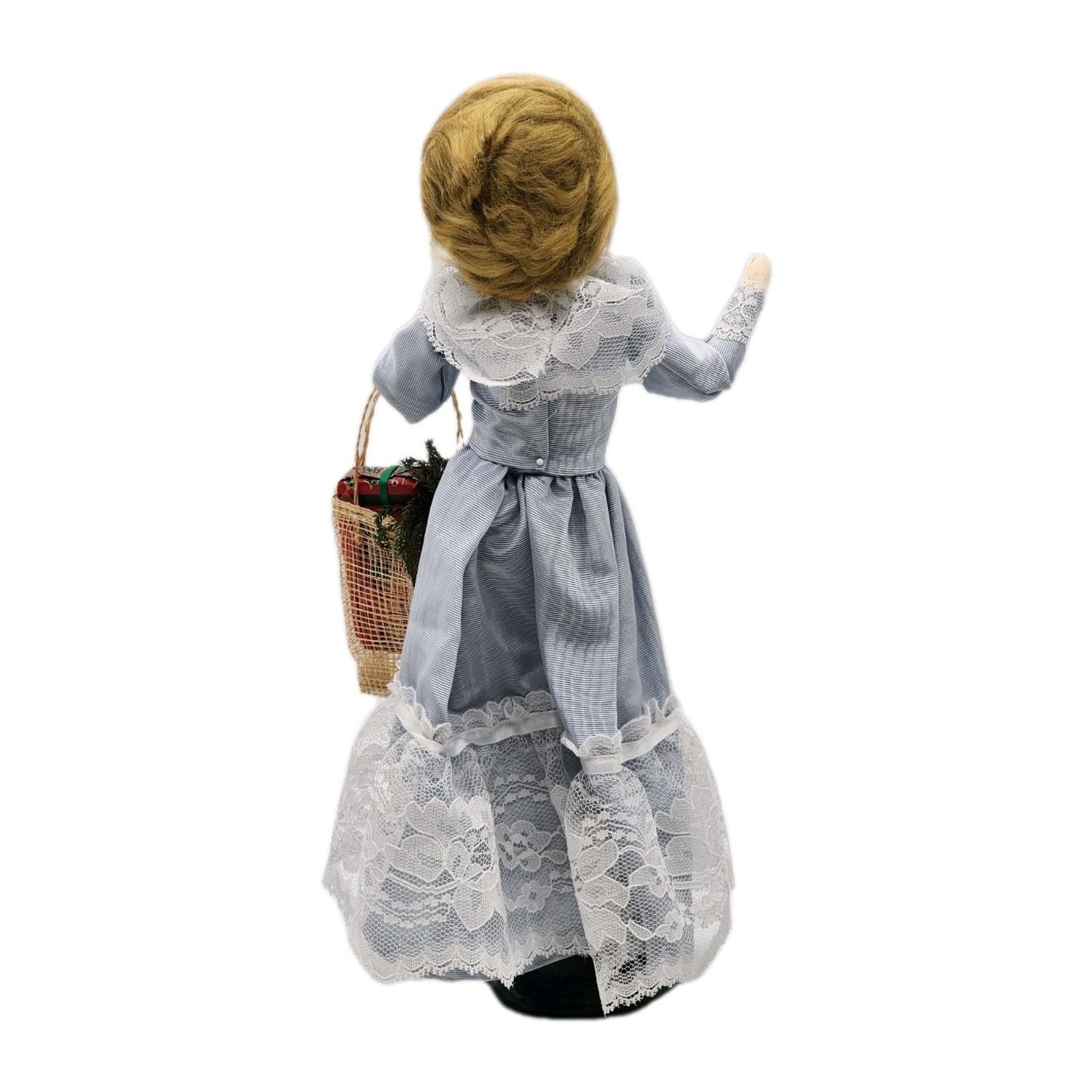 *Woman in blue dress with bag of gifts