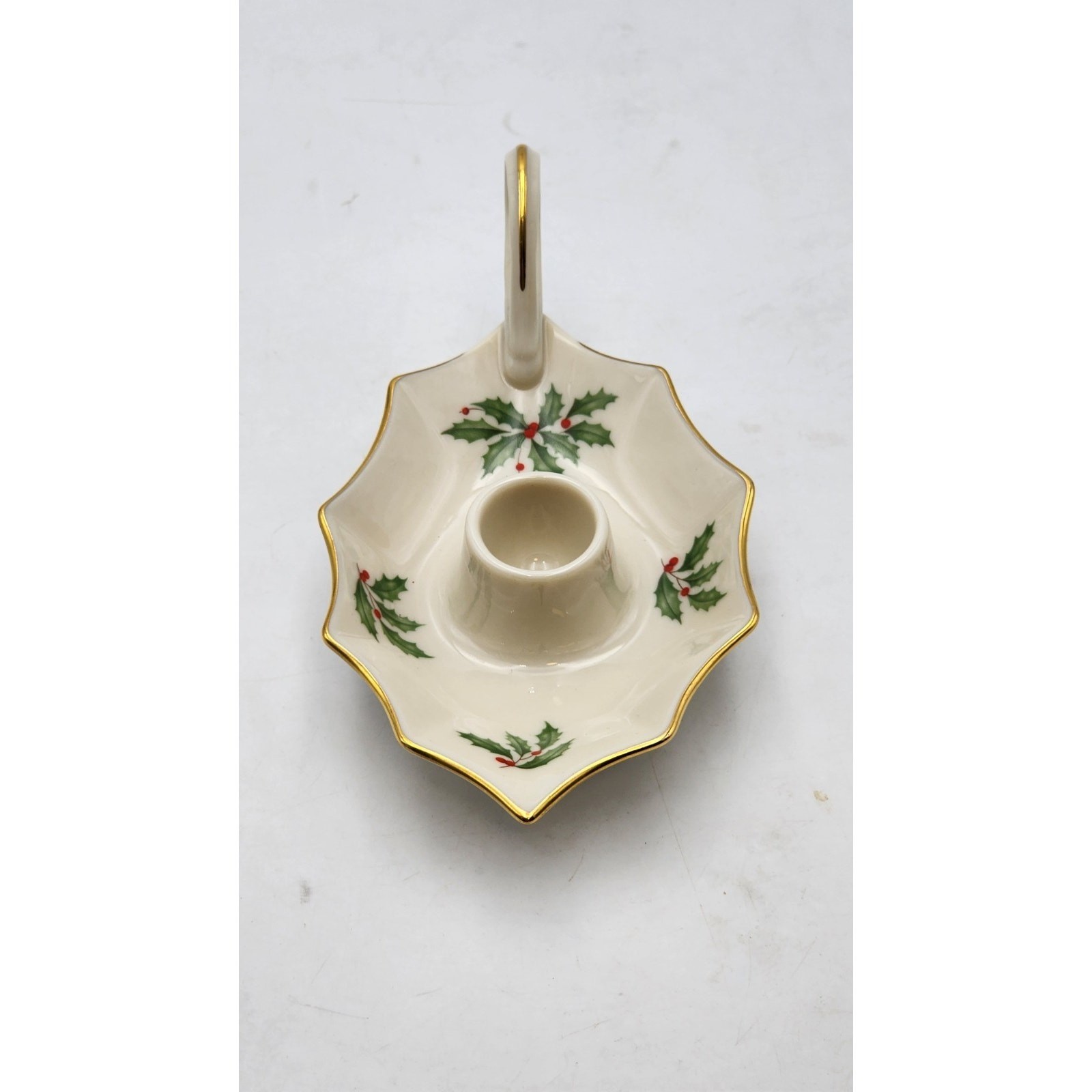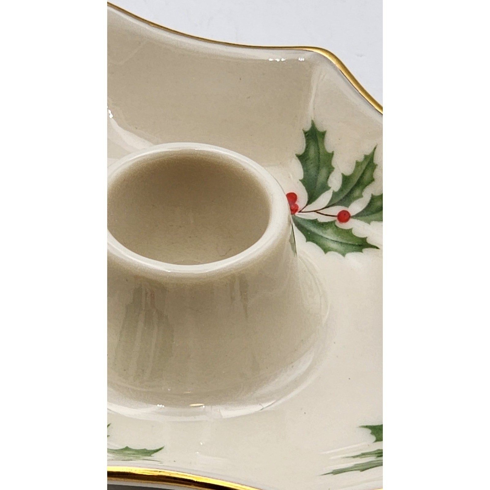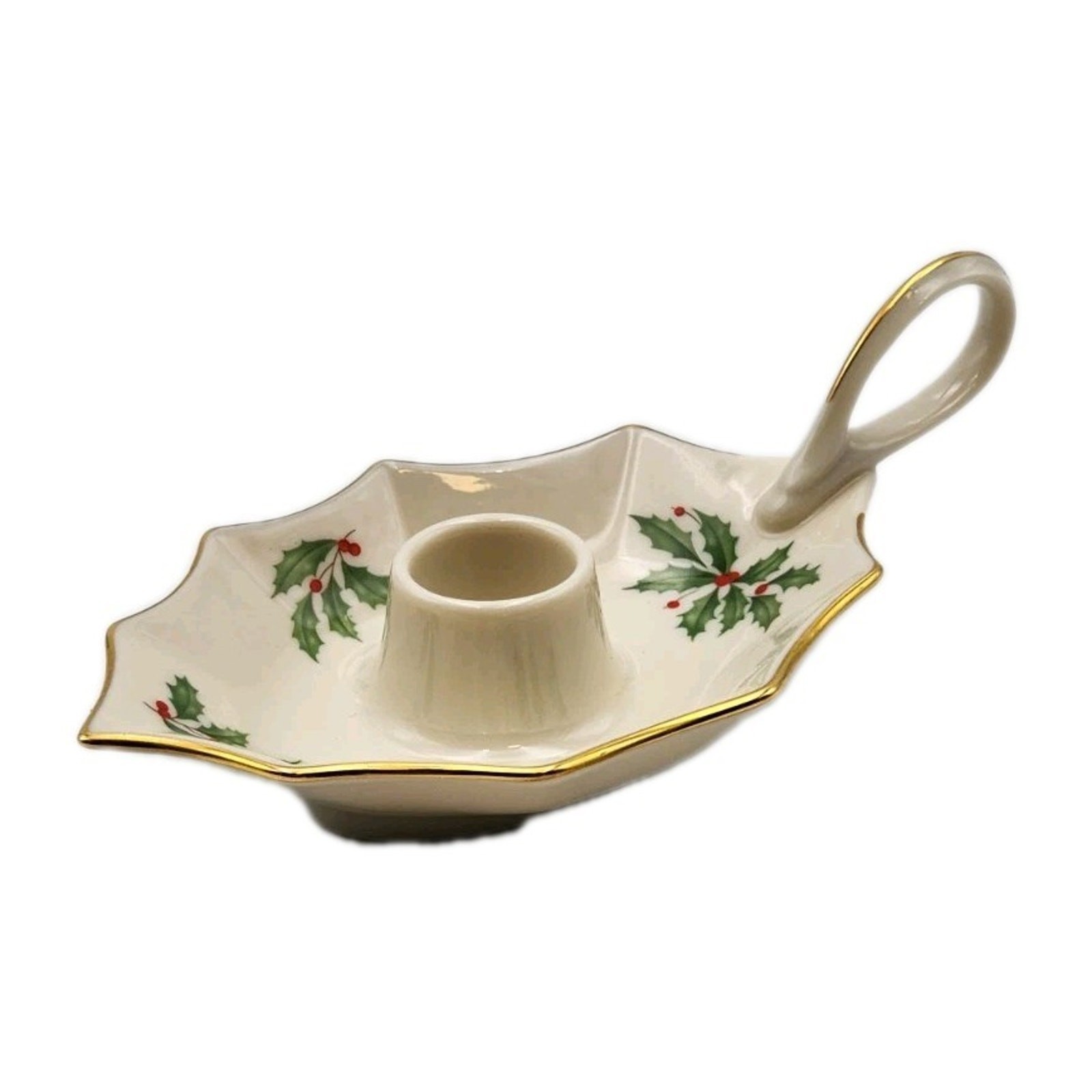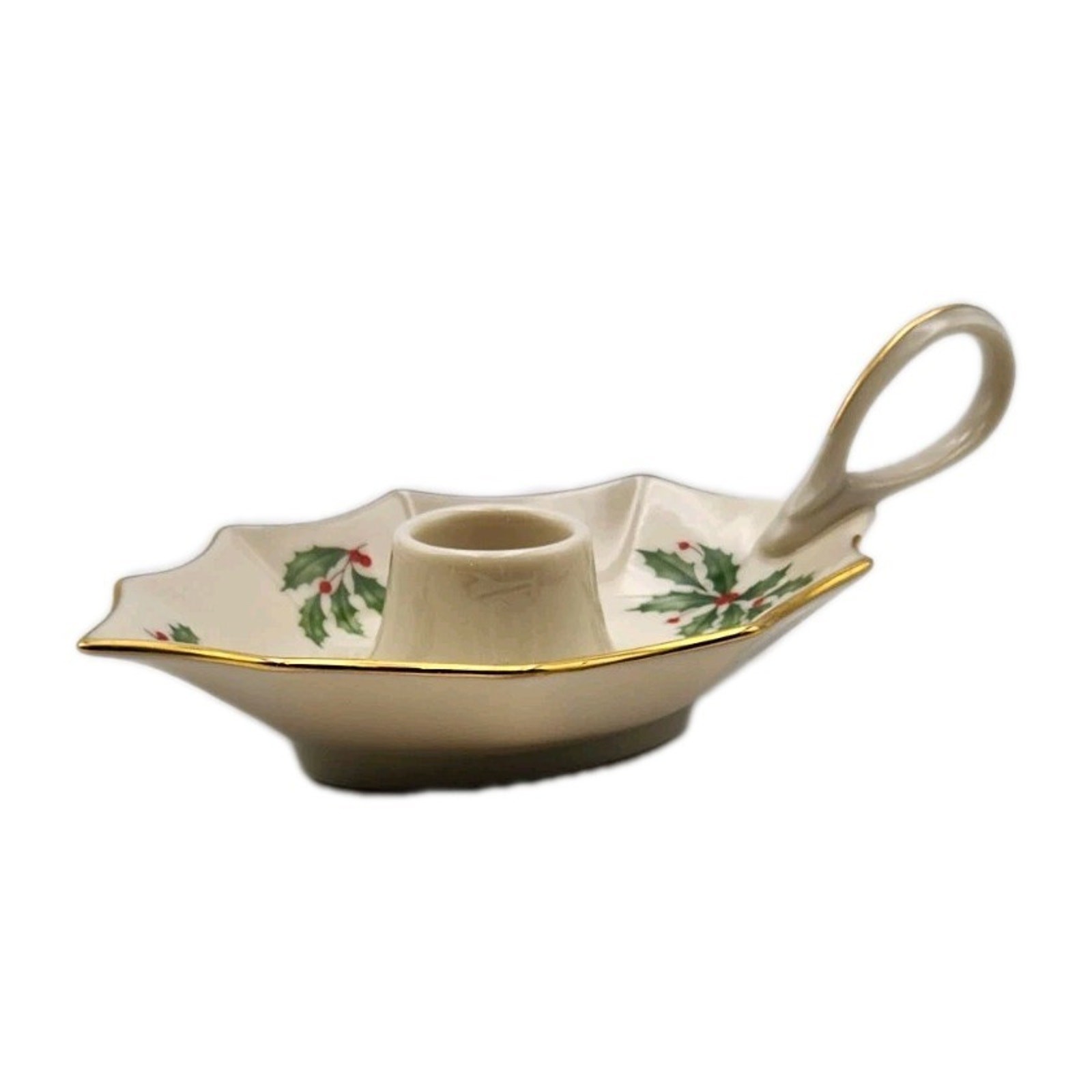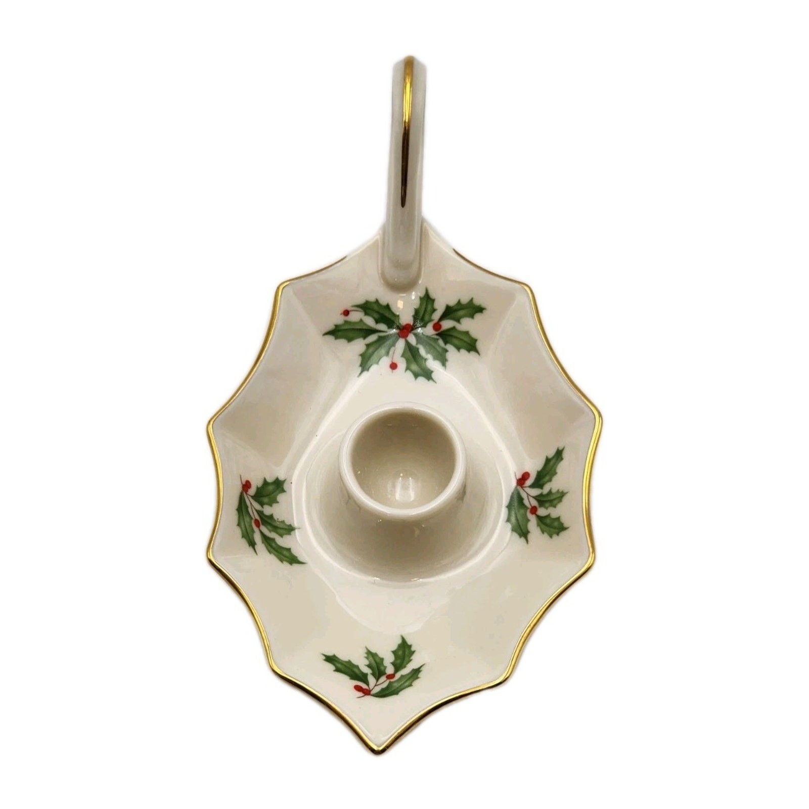 Lenox Holiday Dimension Leaf Candle Holder Porcelain Christmas Holly Berry USA. Shipped with USPS Ground Advantage.