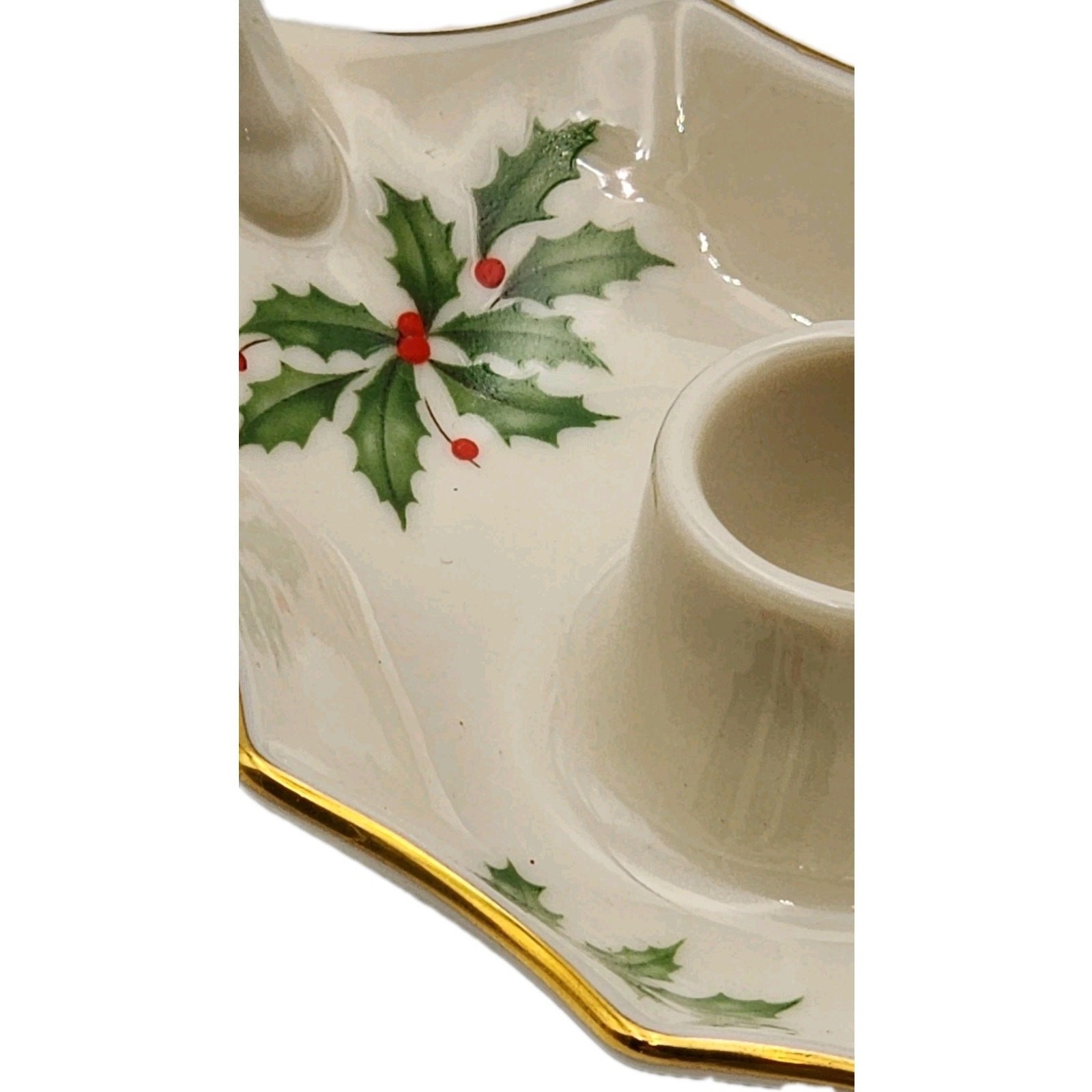 Lenox Holiday Dimension Leaf Candle Holder Porcelain Christmas Holly Berry USA