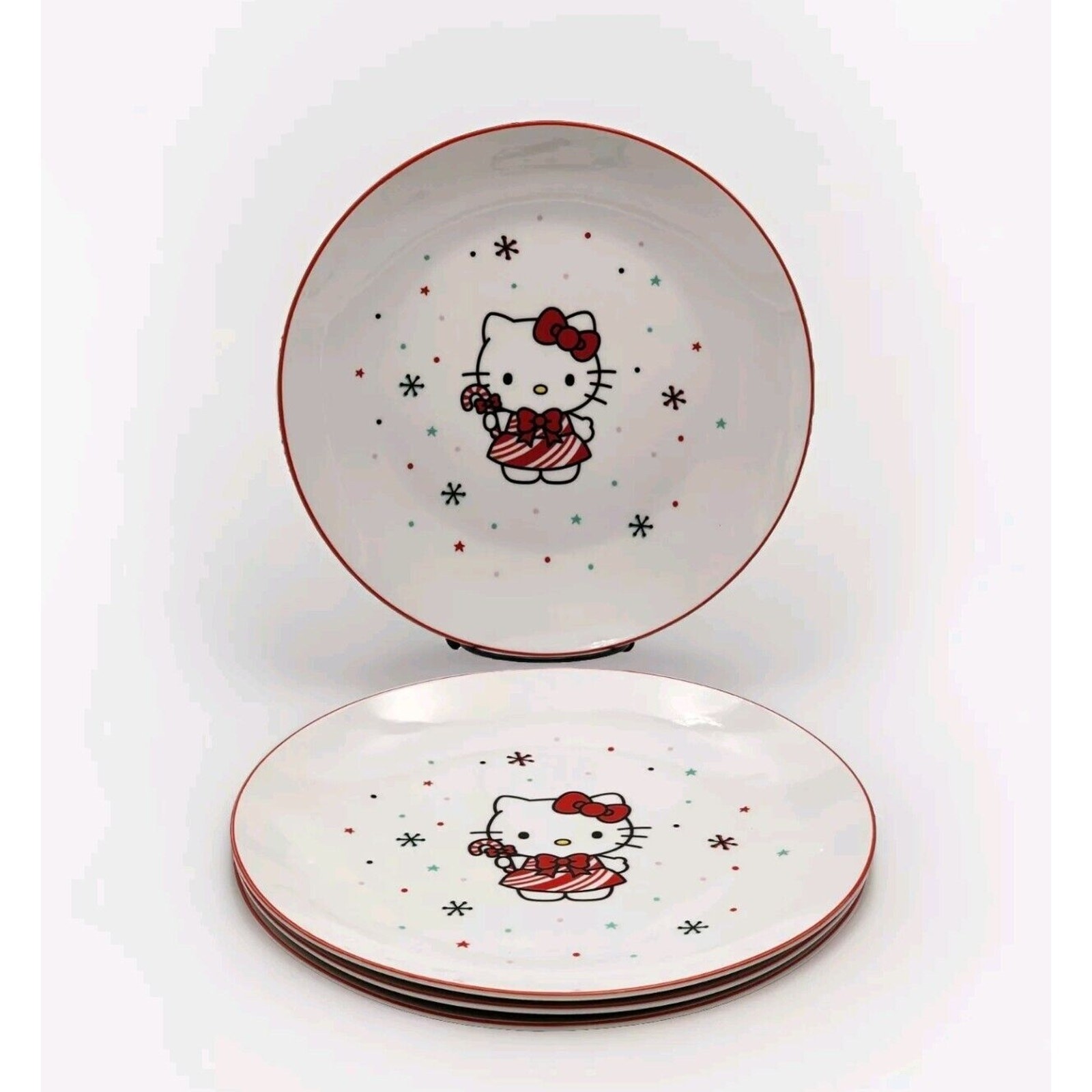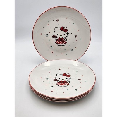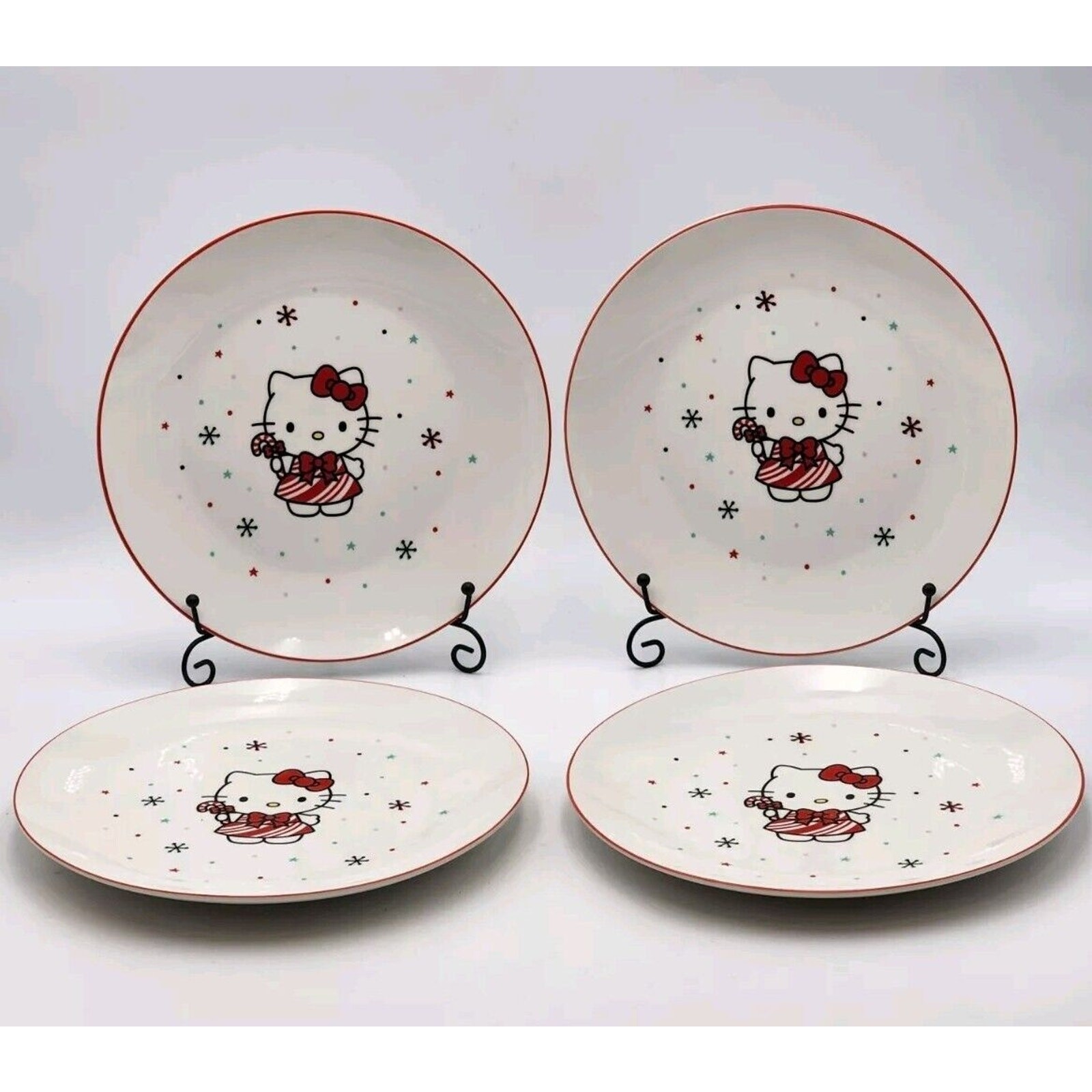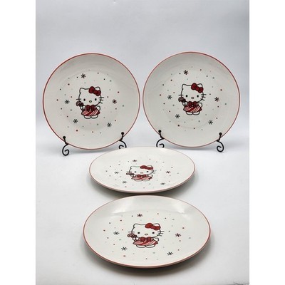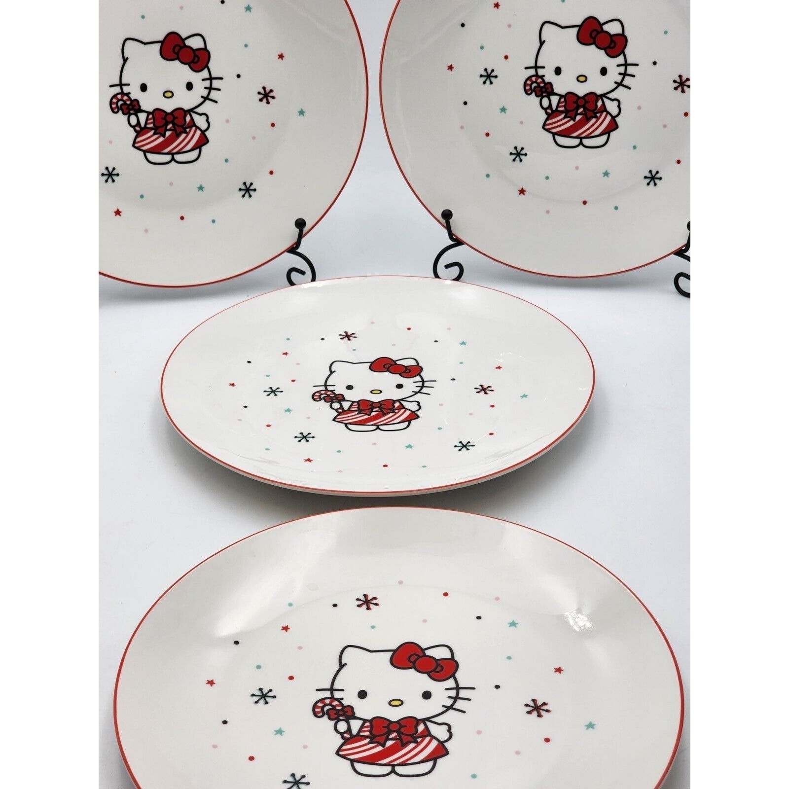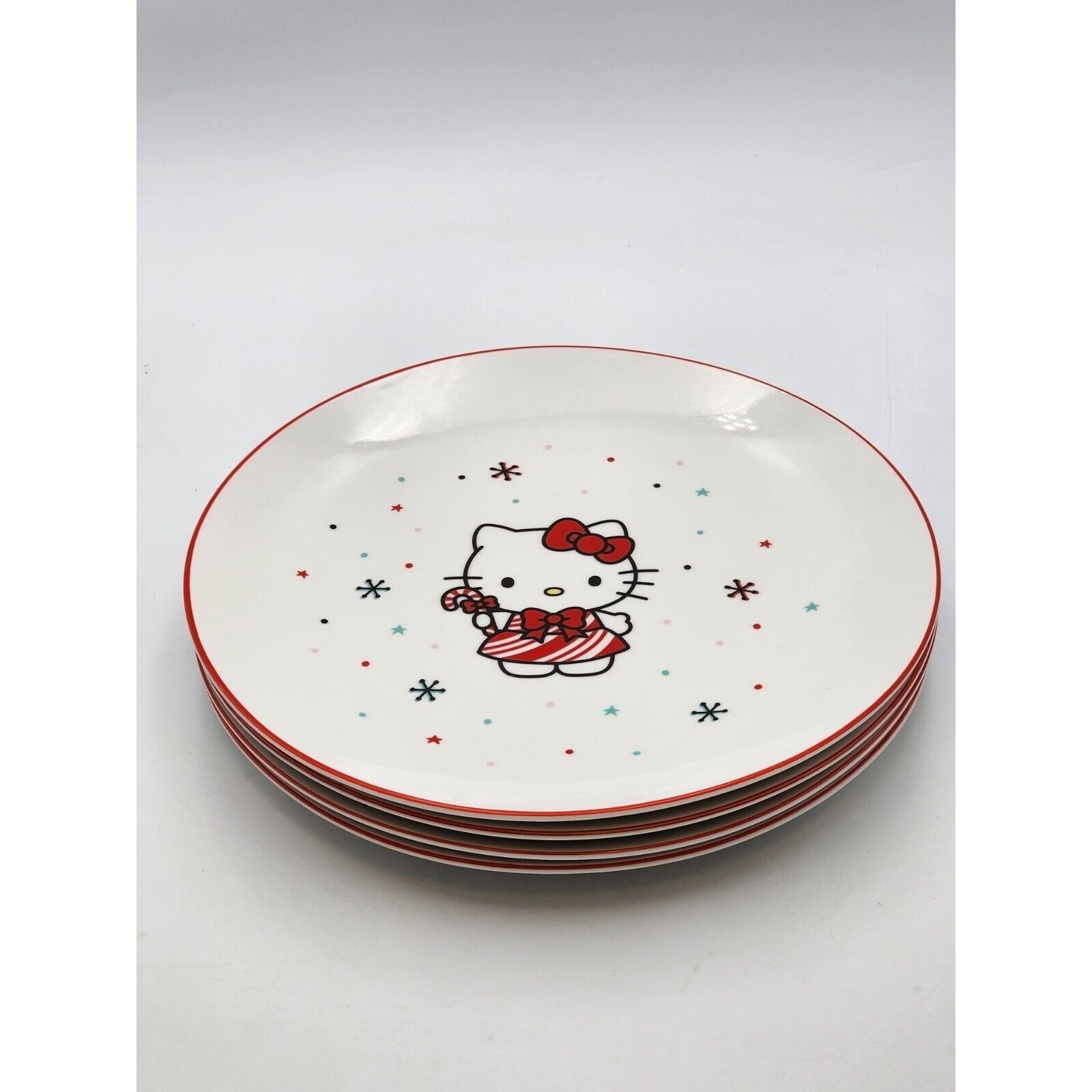Sanrio Hello Kitty Christmas Dinner Plates Candy Cane Snowflakes 10.5” Set Of 4
