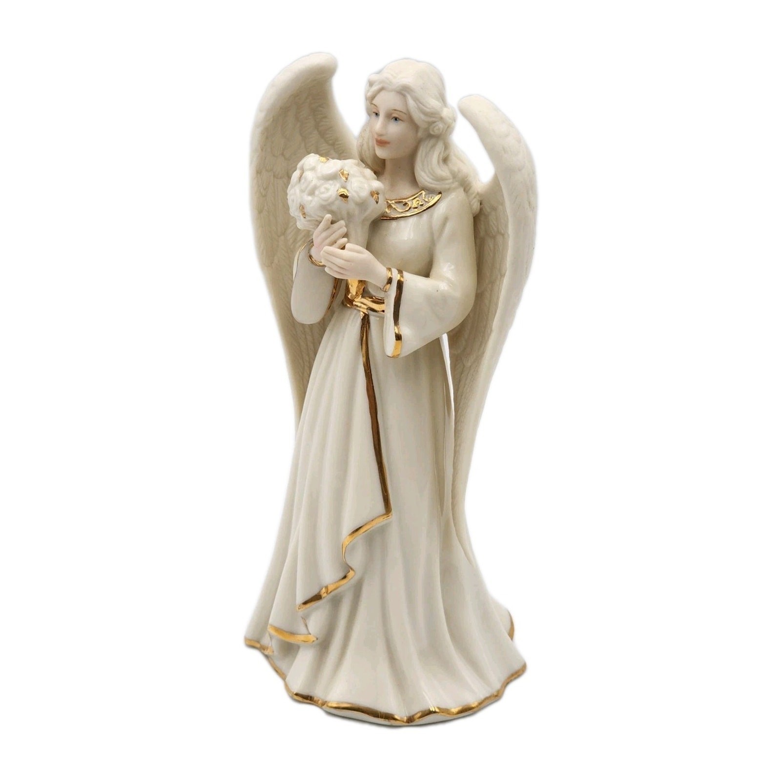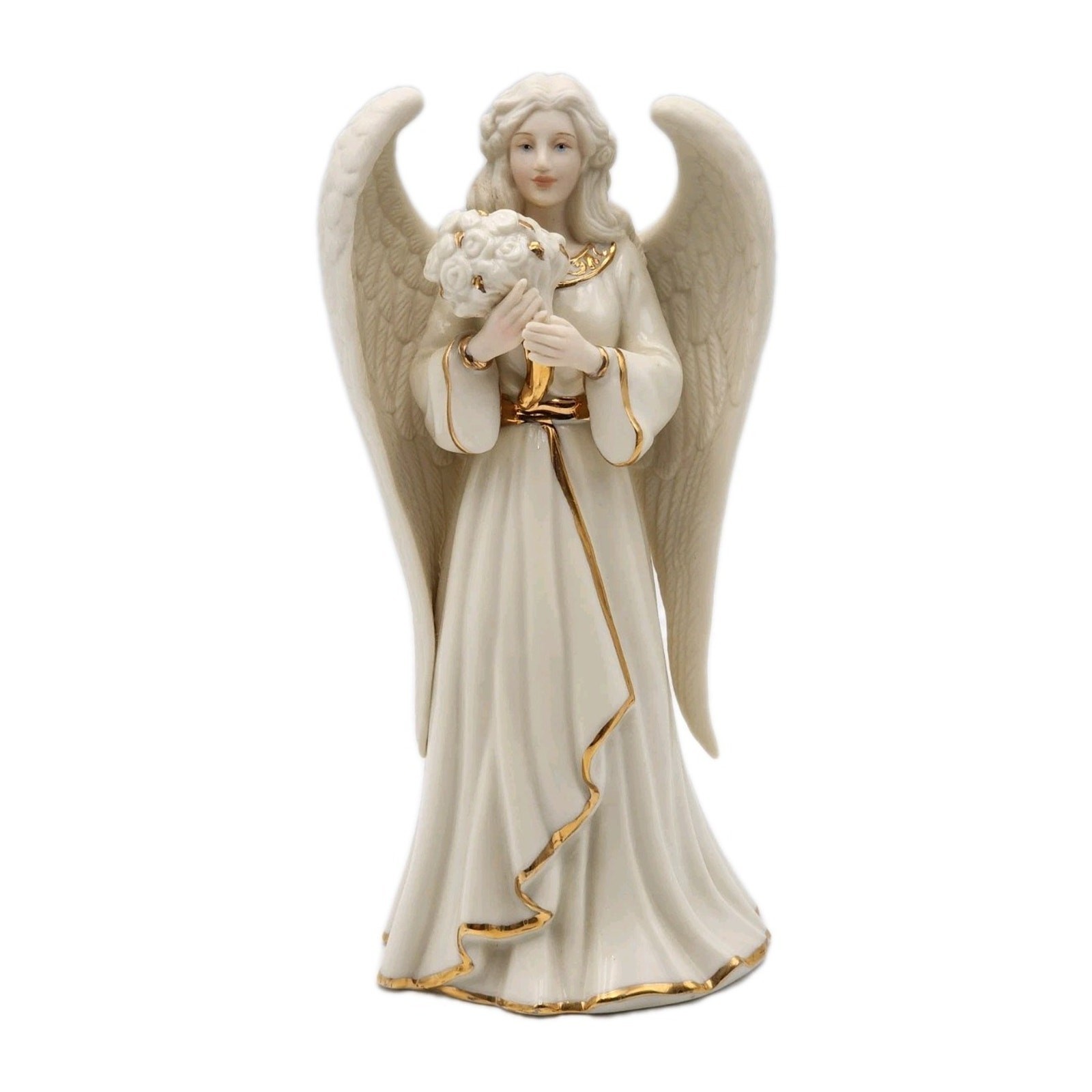 Lenox Angelic Visions Friend Angel With Flowers 8" Figurine Gold Trim 822382 VTG