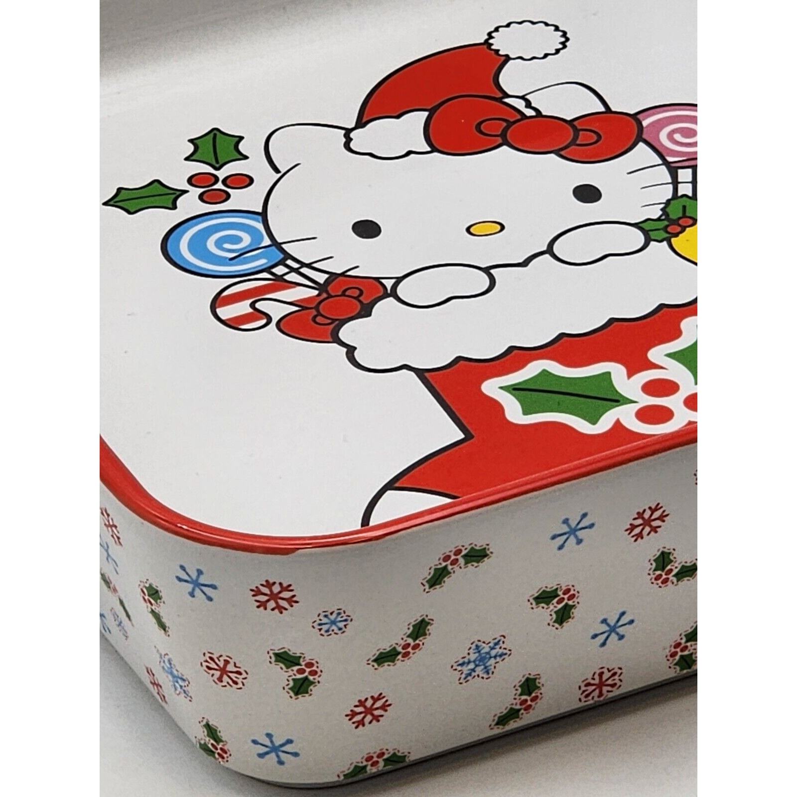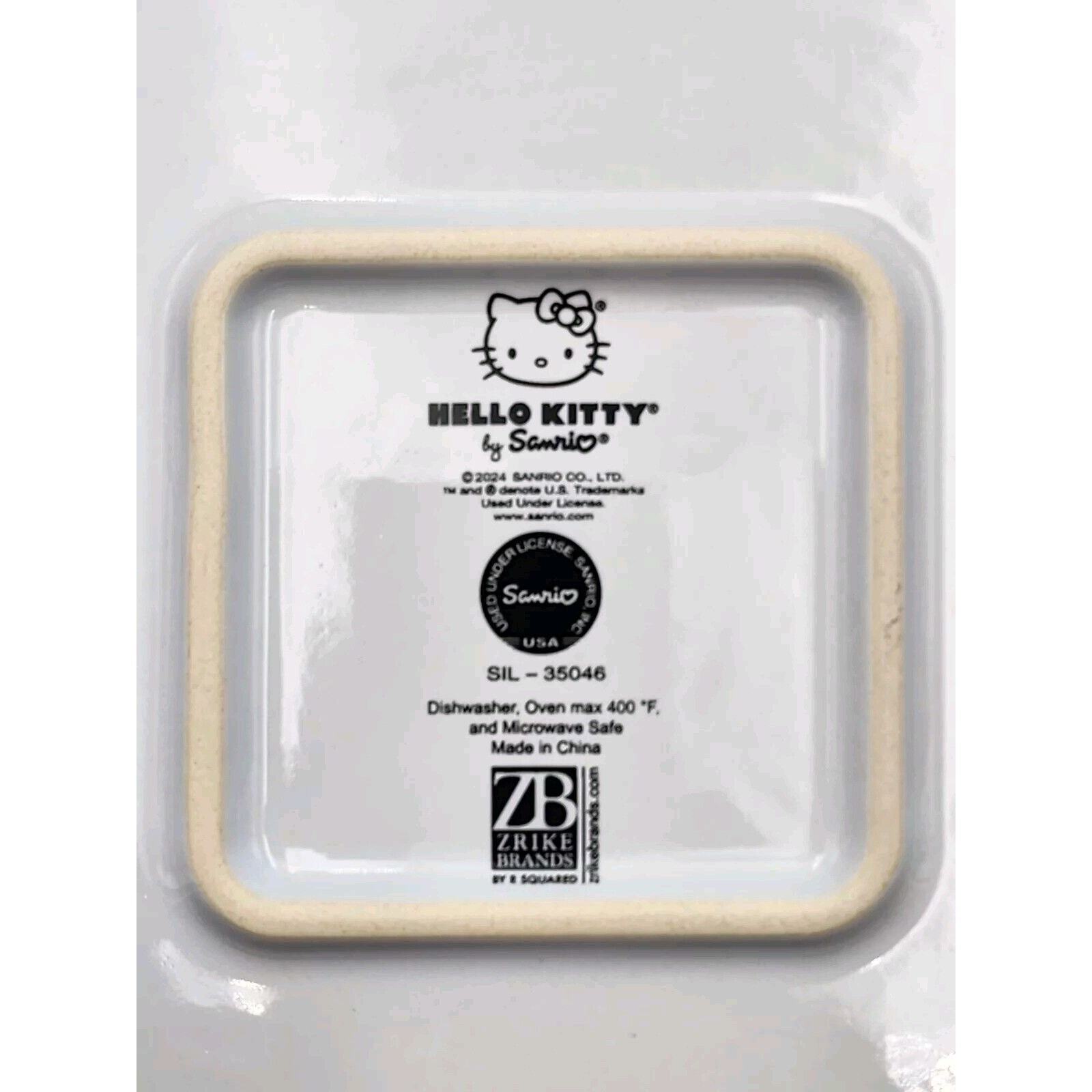 This is a Sanrio Hello Kitty Christmas stocking square baking dish made of ceramic. It measures 9 inches in length, 9 inches in width, and 4 inches in height. The dish features a multicolor design with Hello Kitty branding, perfect for any fan of the Sanrio franchise. The item is brand new and manufactured in 2024, making it a desirable collectible for fans of Hello Kitty and holiday-themed kitchen items. SUPER FAST SHIPPING
