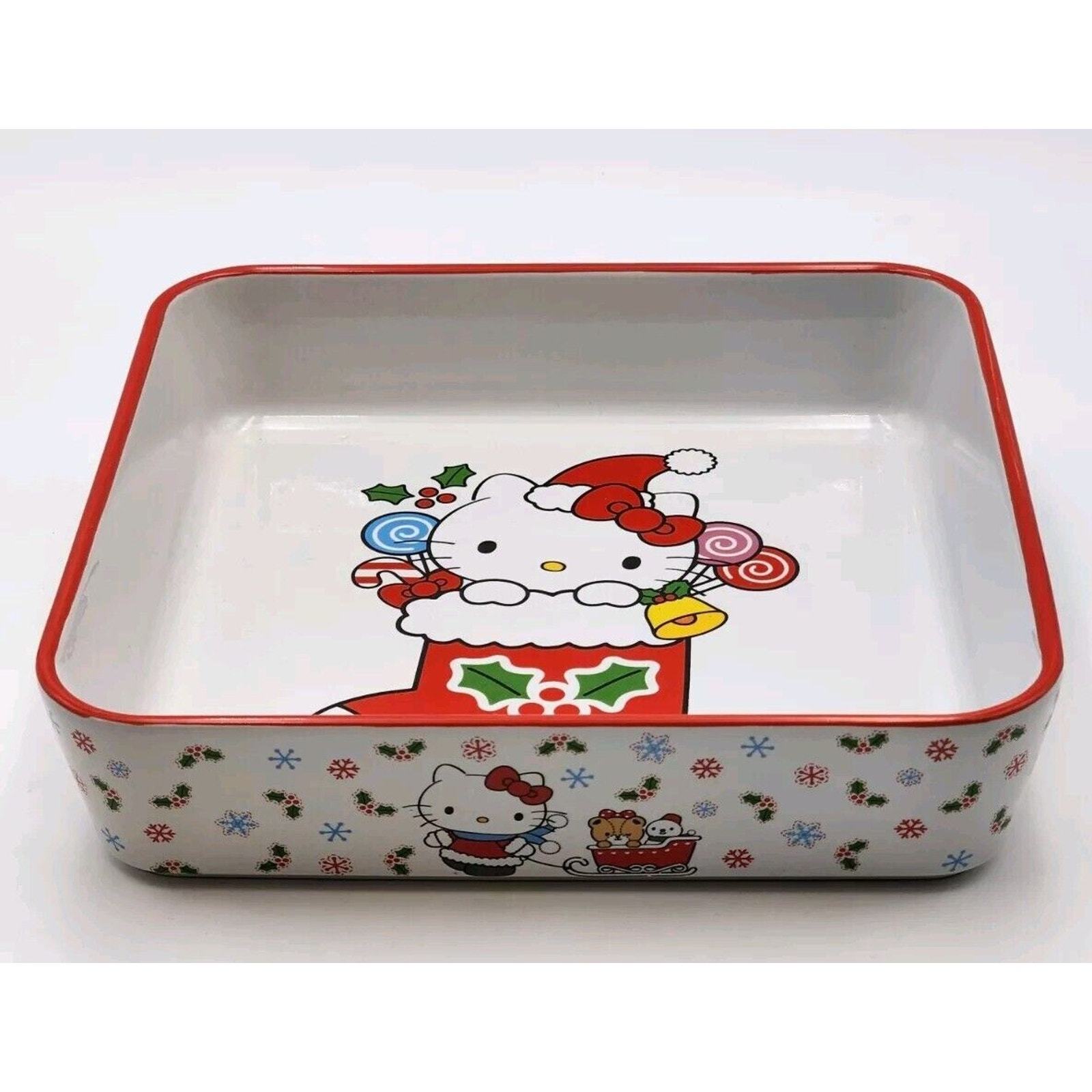 Sanrio Hello Kitty Christmas Stocking Square Baking Dish 9" Ceramic Brand New