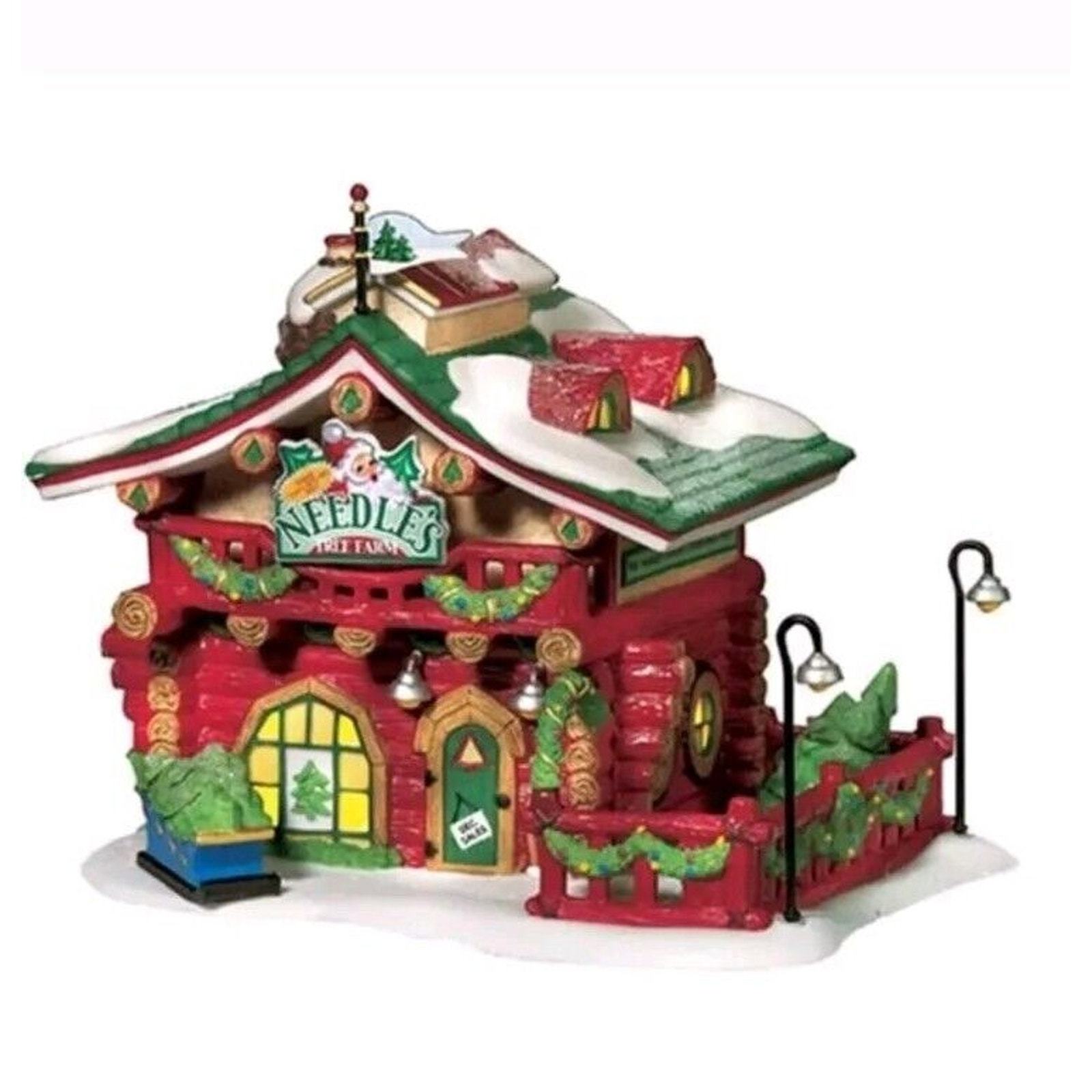 The Needle's Tree Farm comes illuminated, adding a soft glow to create a cozy ambiance. It's a retired treasure, still in its original box, ensuring it remains a pristine part of your collection or a thoughtful gift for someone special. With its traditional style and attention to detail, it reflects the timeless charm of Christmas villages and the joy of the seasonal theme.