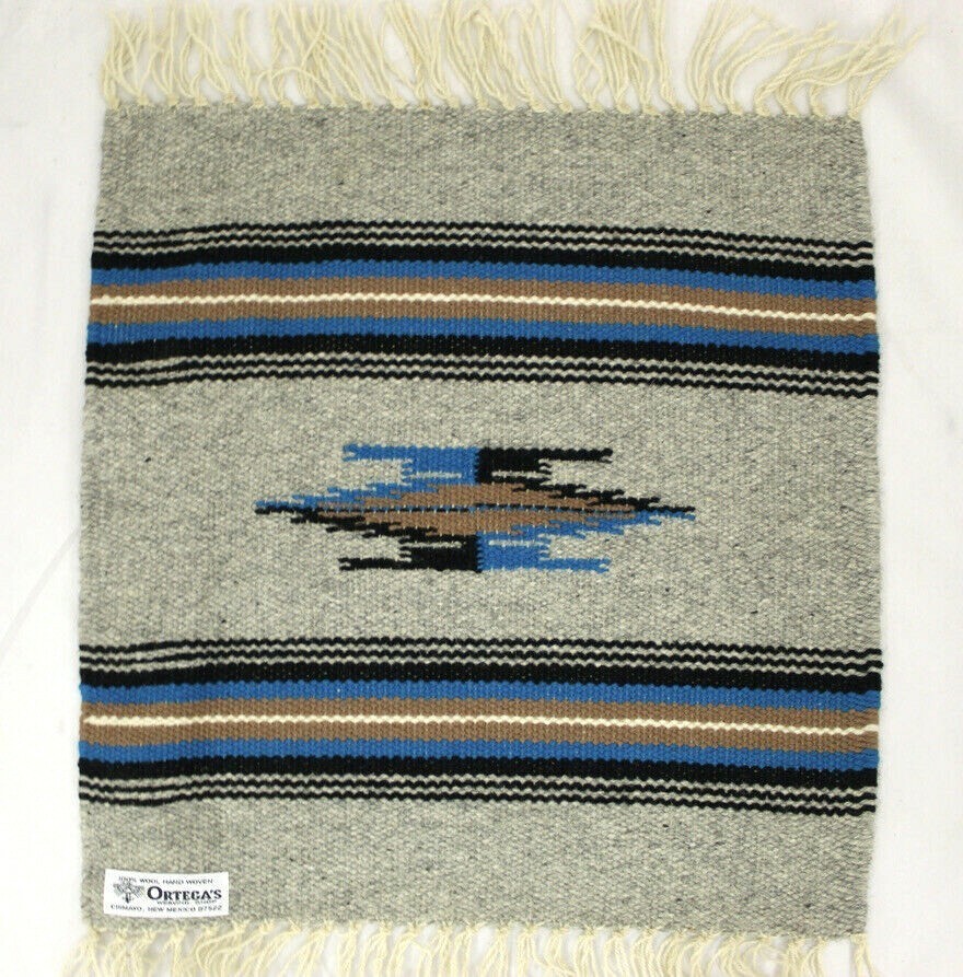 Chimayo New Mexico Ortega’s Weaving Shop 100% Wool Hand woven 15" X 14.5" RUG