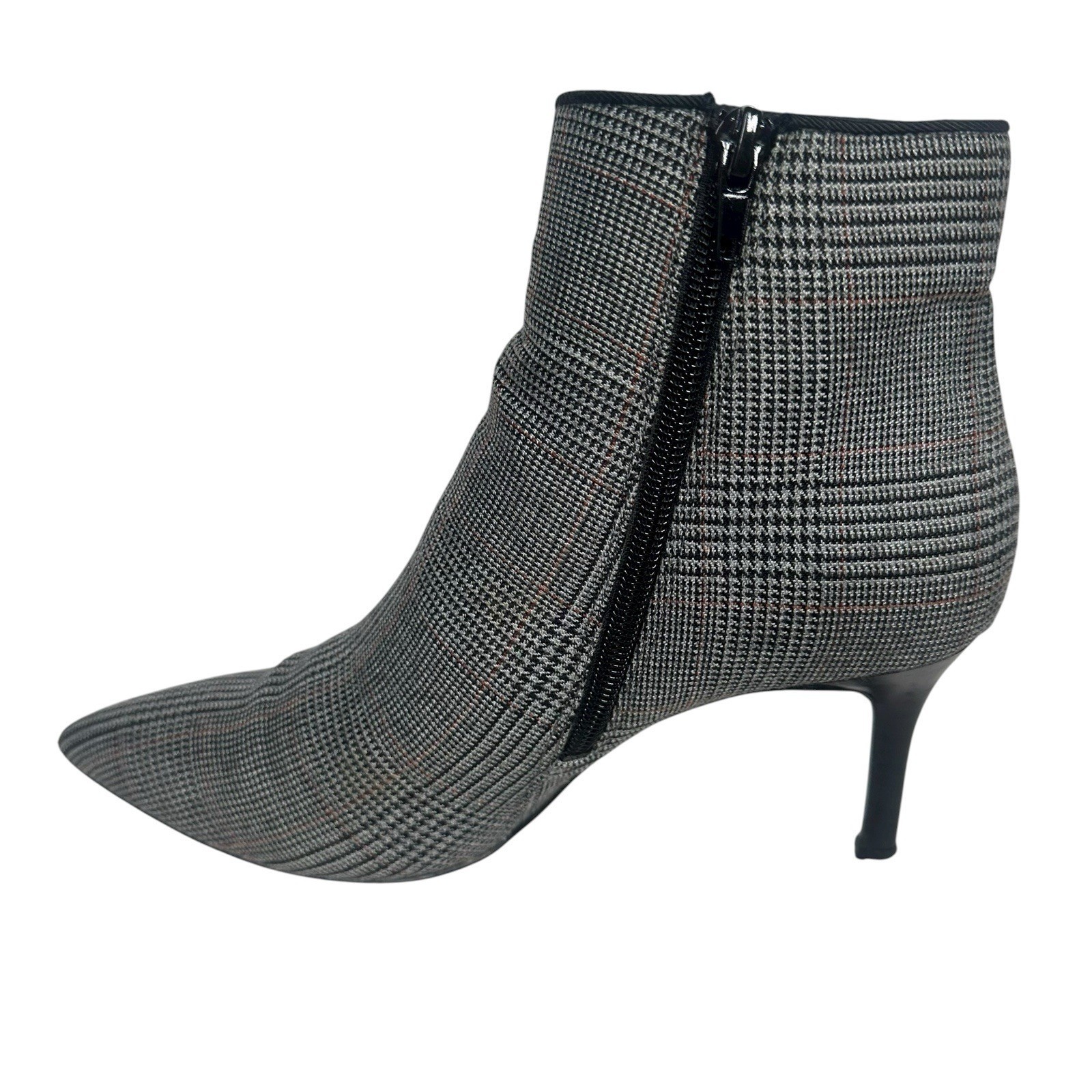 Cabi Dandy Glen Plaid Black & Gray Stiletto Ankle Booties 6M Side Zip Pointy Toe