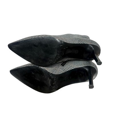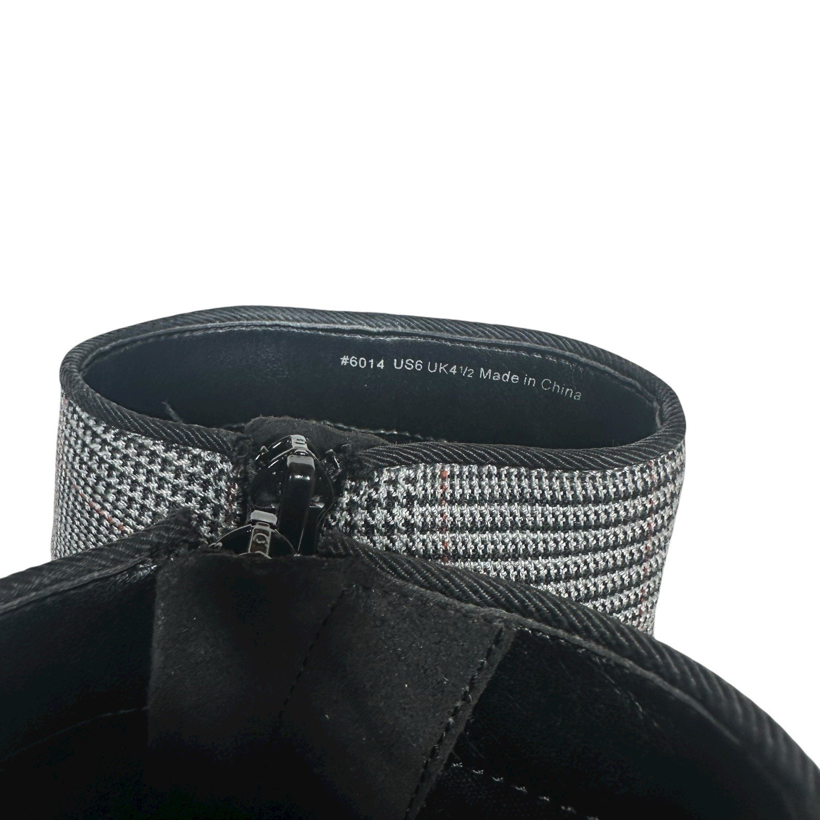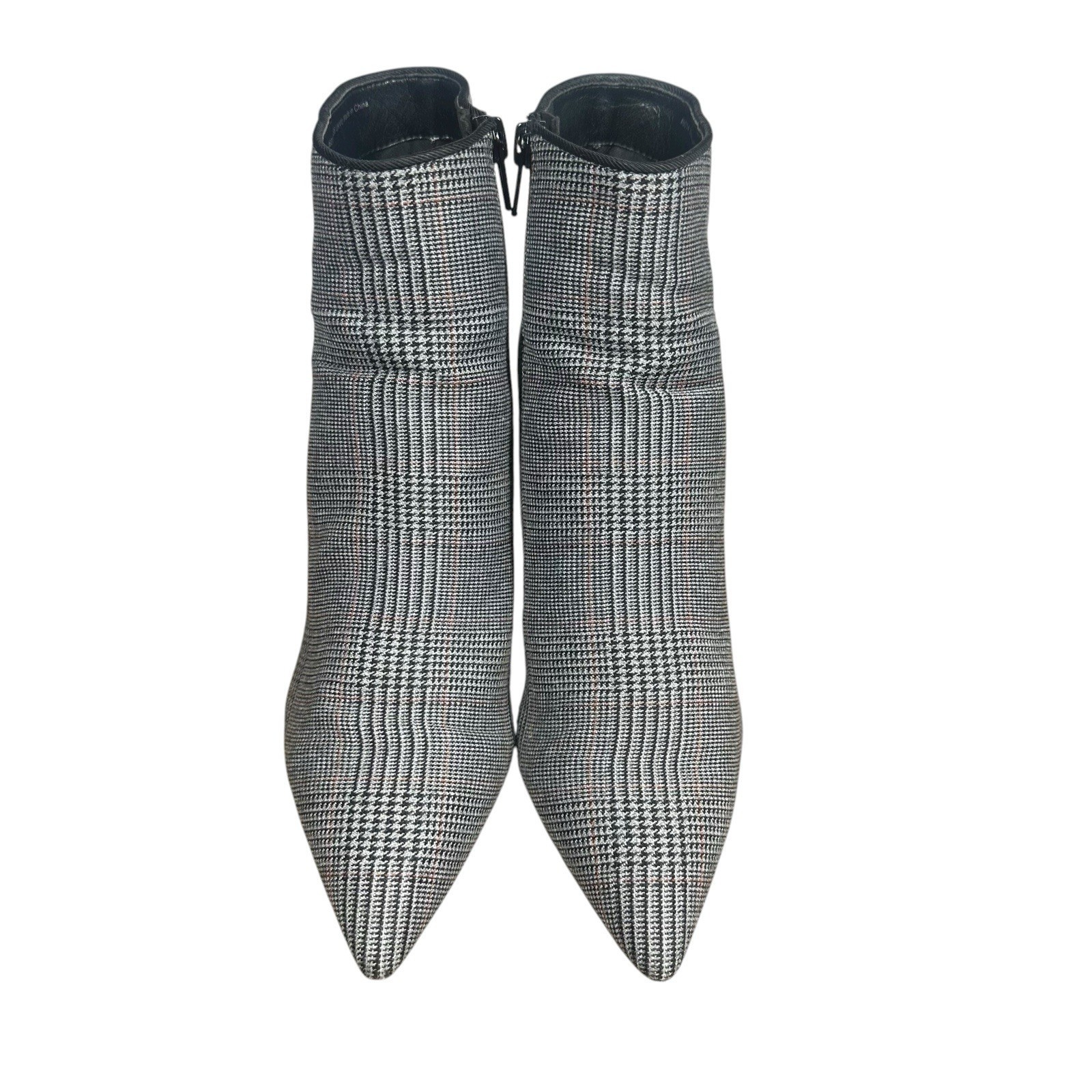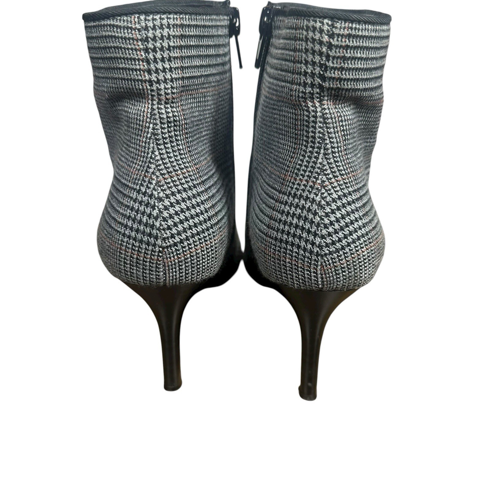 Cabi Dandy Glen Plaid Black Gray Stiletto Ankle Booties Women's Size 6M Side Zip Pointy Toe