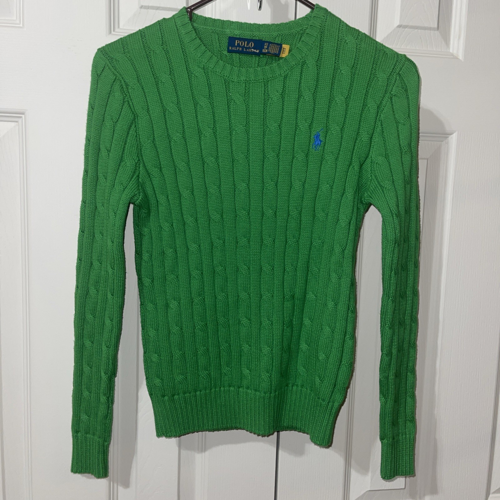 Polo Ralph Lauren Womens Cable Knit green Sweater blue Pony sz xs NEW $128