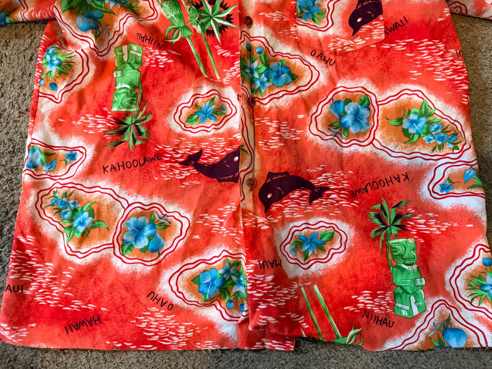 Vintage Pacific Île Creations Hawaïen Chemise Manches Courtes Bouton Avant L Red