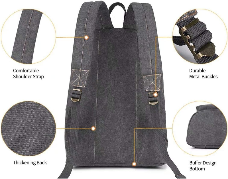 Canvas Laptop Backpack, Durable Rucksack, Travel Bag Fits 15.6 Inch N