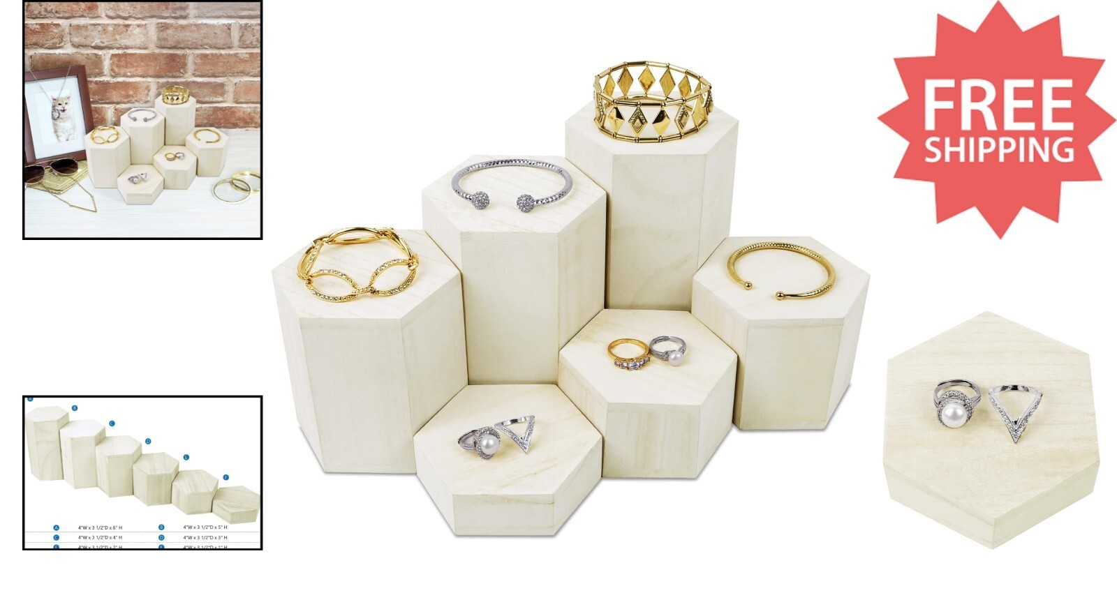 Lightweight 6-Pc Hexagon Risers for Jewelry and 24 similar items