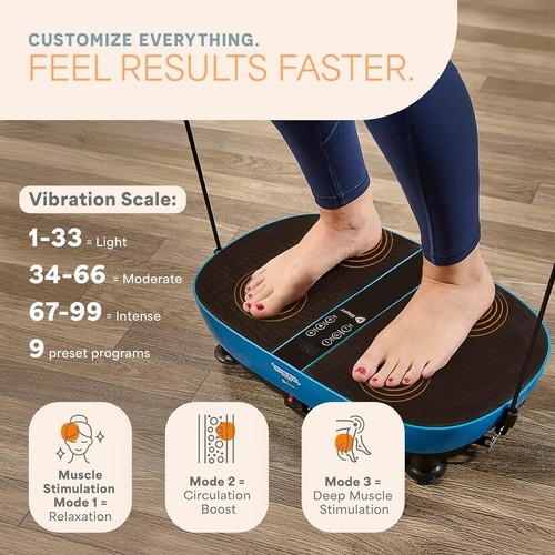 * Strengthen, Sculpt Tone Muscles ? Amplify your workout with resistance bands and multiple pose positions. This vibrating plate exercise machine engages core, arms, legs, and glutes for a total-body workout.