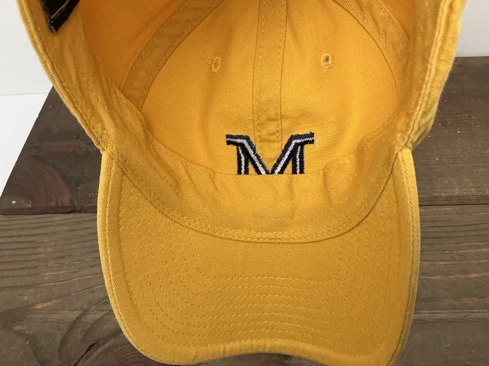 U of M. University of Michigan Wolverines Hat Cap Maize Yellow 100% Cotton. Legacy. Great condition. Strap Back with Metal Buckle.