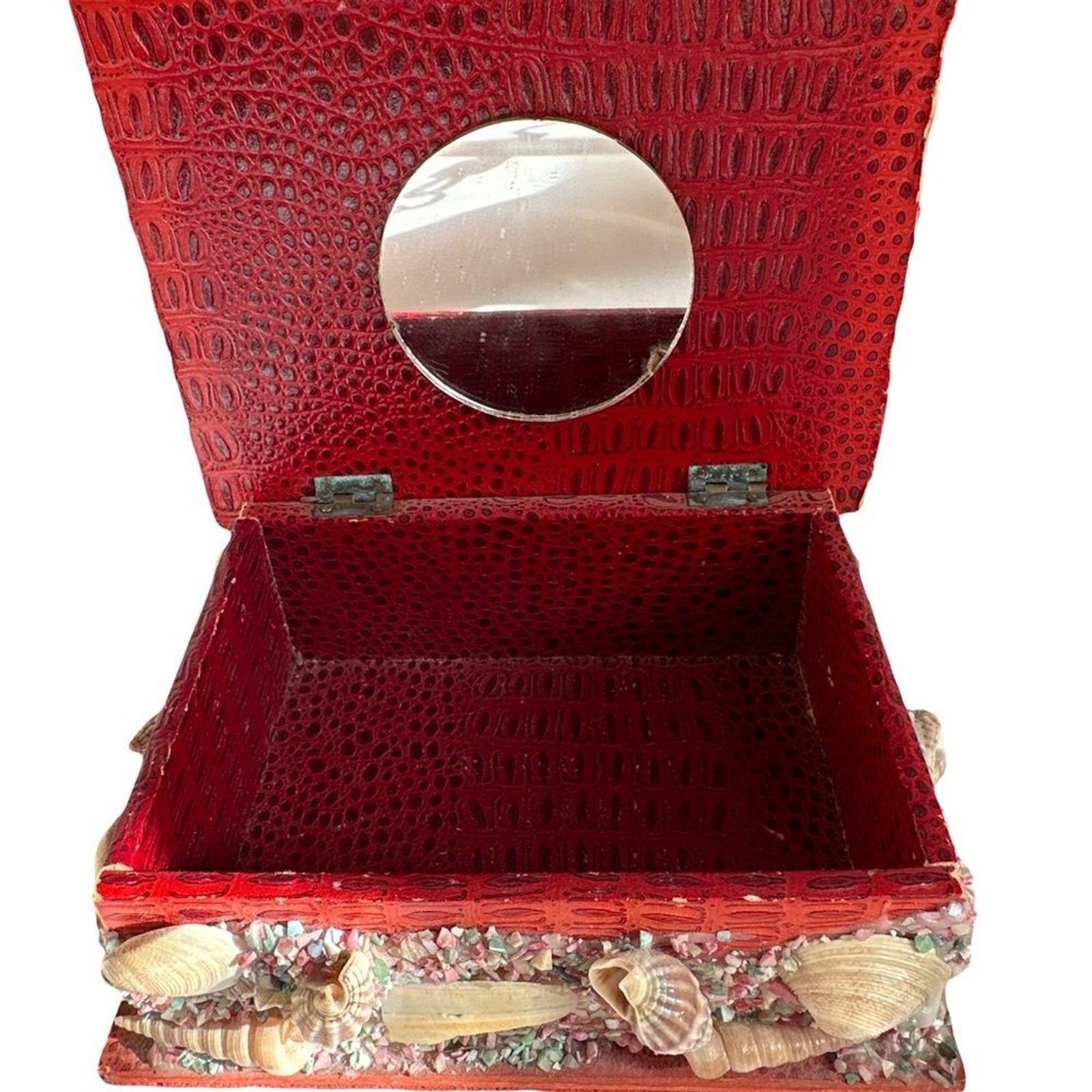 Vintage Red Seashell Embellished Jewelry Box with Mirror