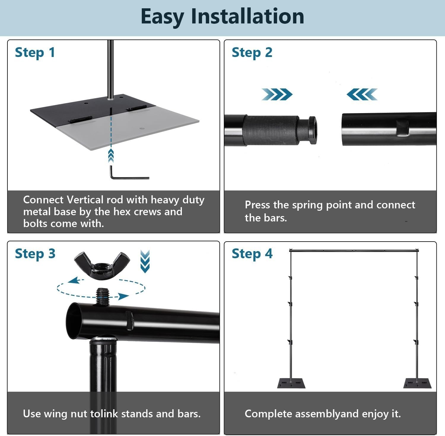 Pipe and drape backdrop kit This one can hang curtains, balloons, string lights, flower walls and grass walls and other decorations. Use for family gatherings, baby shower,business events,weddings and professional photography or parties.