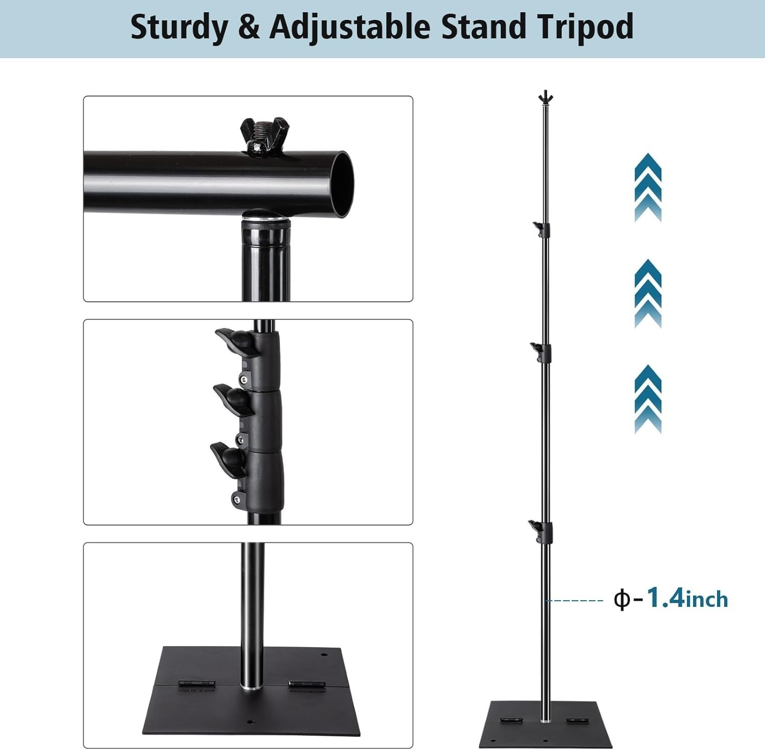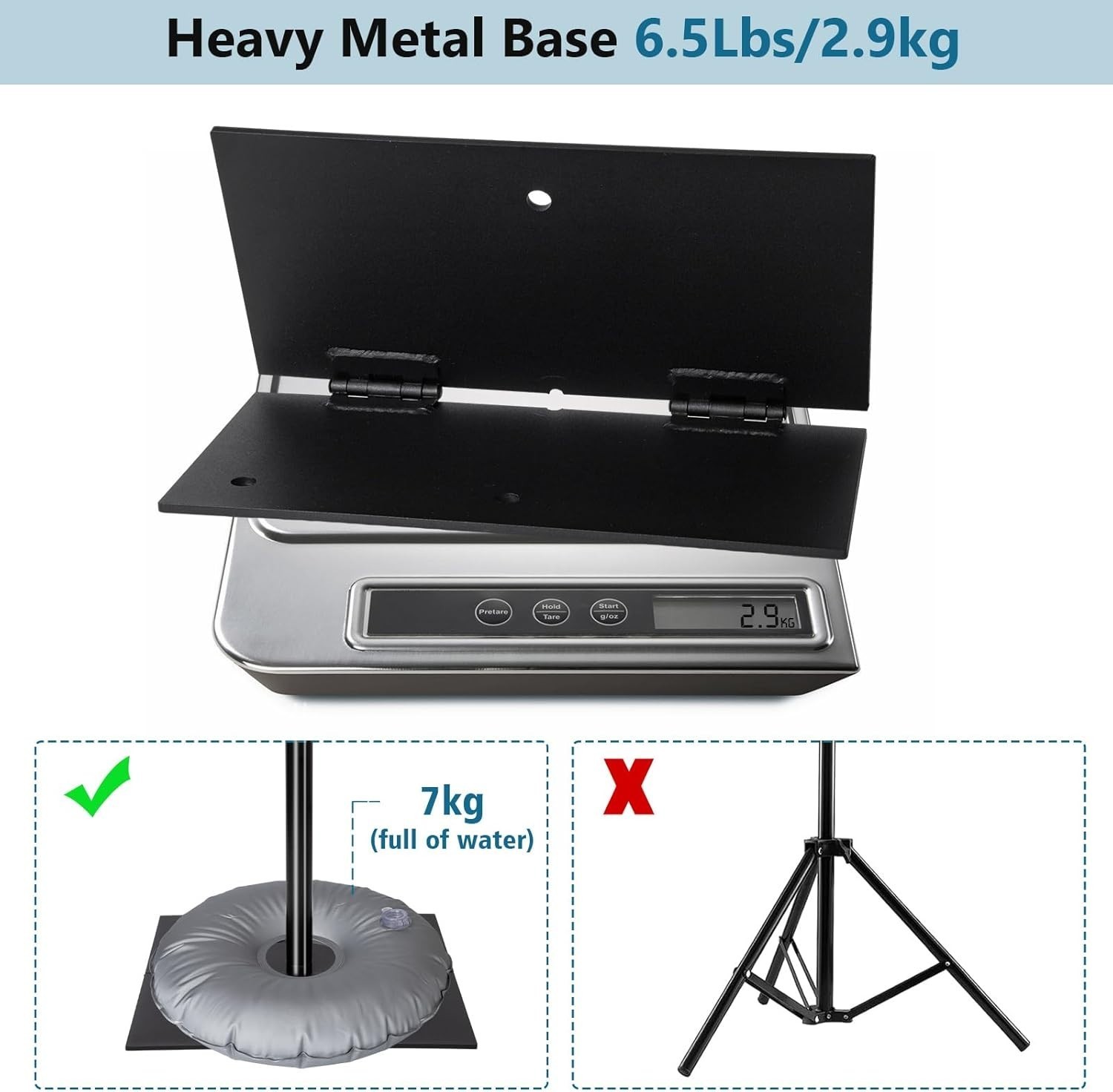 [2 x Heavy Metal Base] The Base is made of high-quality iron.4.6kg/1pcs Metal Base.It can avoid the more space.[2 x Water weight bag] You can use the water bag with some water to increase the stability. [6 x Metal Ground Nails to fix the bases] ensure a strong hold for those extra heavy backdrops when you use the stand kit when outside using