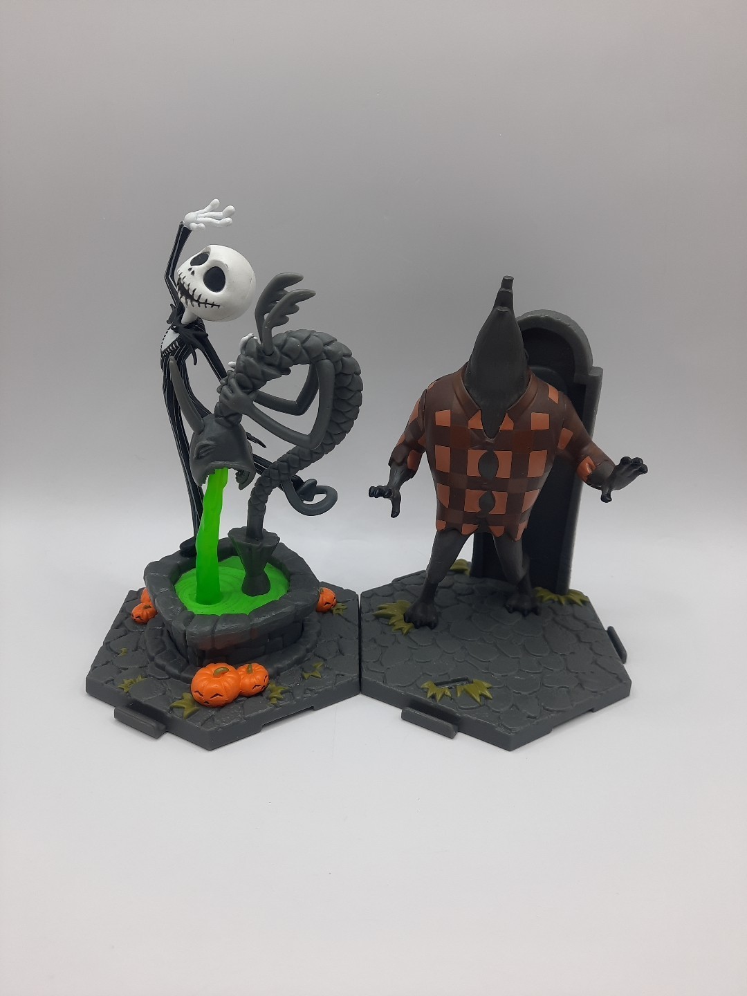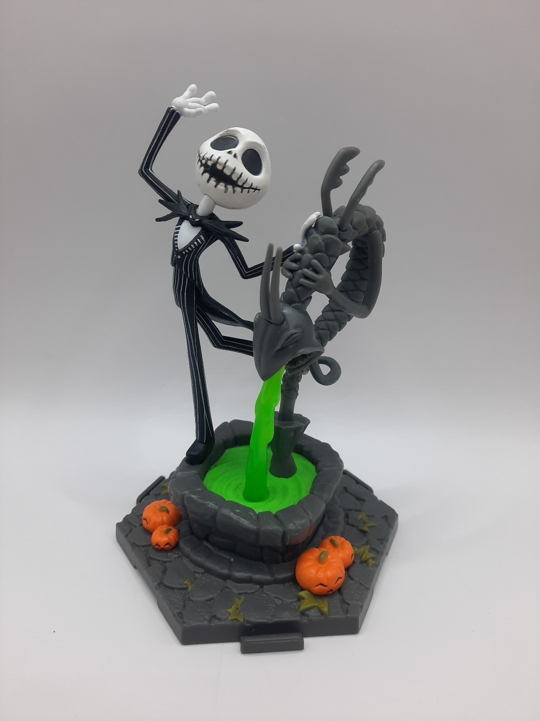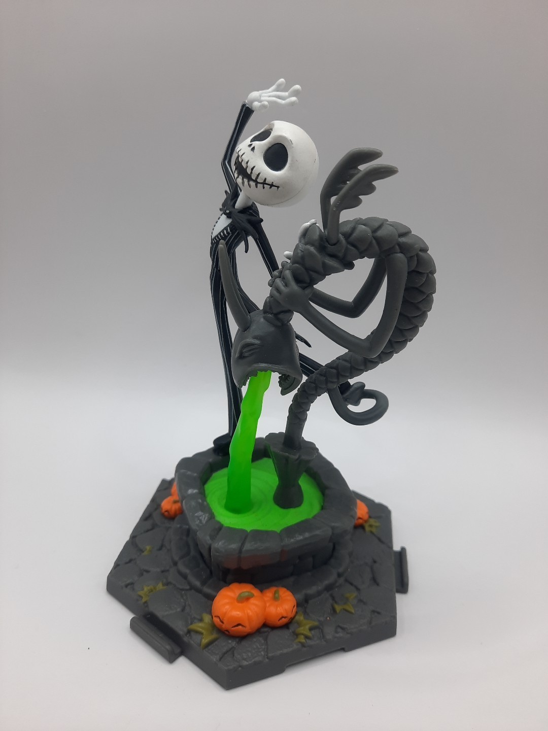 This lot is preowned, with some condition issues. Jack foot is out of the base ( could be glued in, you can't notice it until you pull on it) the wolf doesn't have the cross or dog on the base.