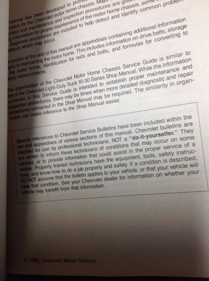 1989-1990 Chevrolet Motor Home Chassis Service Guide Manual OEM GM Factory 1989 RV Trailer Guide