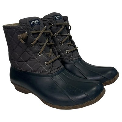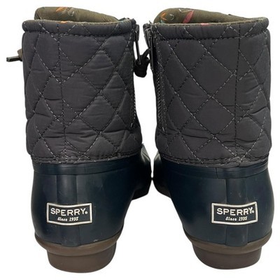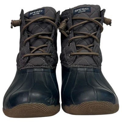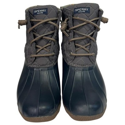 Sperry Saltwater Duck Boots Womens Gray Navy Quilted Rubber Outdoor