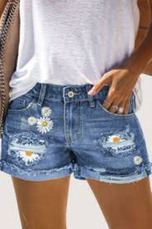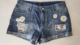 Womens Size Large Cutoff Shorts Daisies Distressed Denim