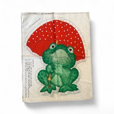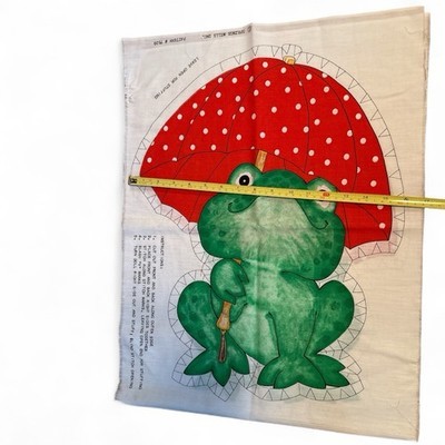 Spring Mills Green Frog Fabric Pillow Panel Cut & Sew Red Polka Dot Umbrella Vtg