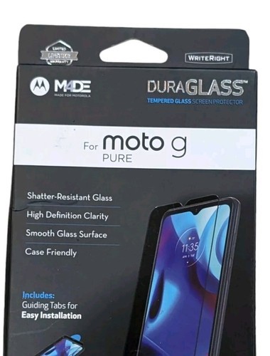 Brand new duraglass tempered glass screen protector. Made for Moto g pure, Moto g go, Moto g power 2021, Moto g power 2022.