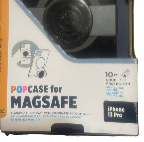 Introducing the Popcase for MagSafe, specifically designed for Apple iPhone 13 Pro users. This magnetic phone case offers 10ft drop protection, a stylish black color, and an integrated Popgrip Slide for easy handling. It is compatible with MagSafe technology and is perfect for those who are always on the go.