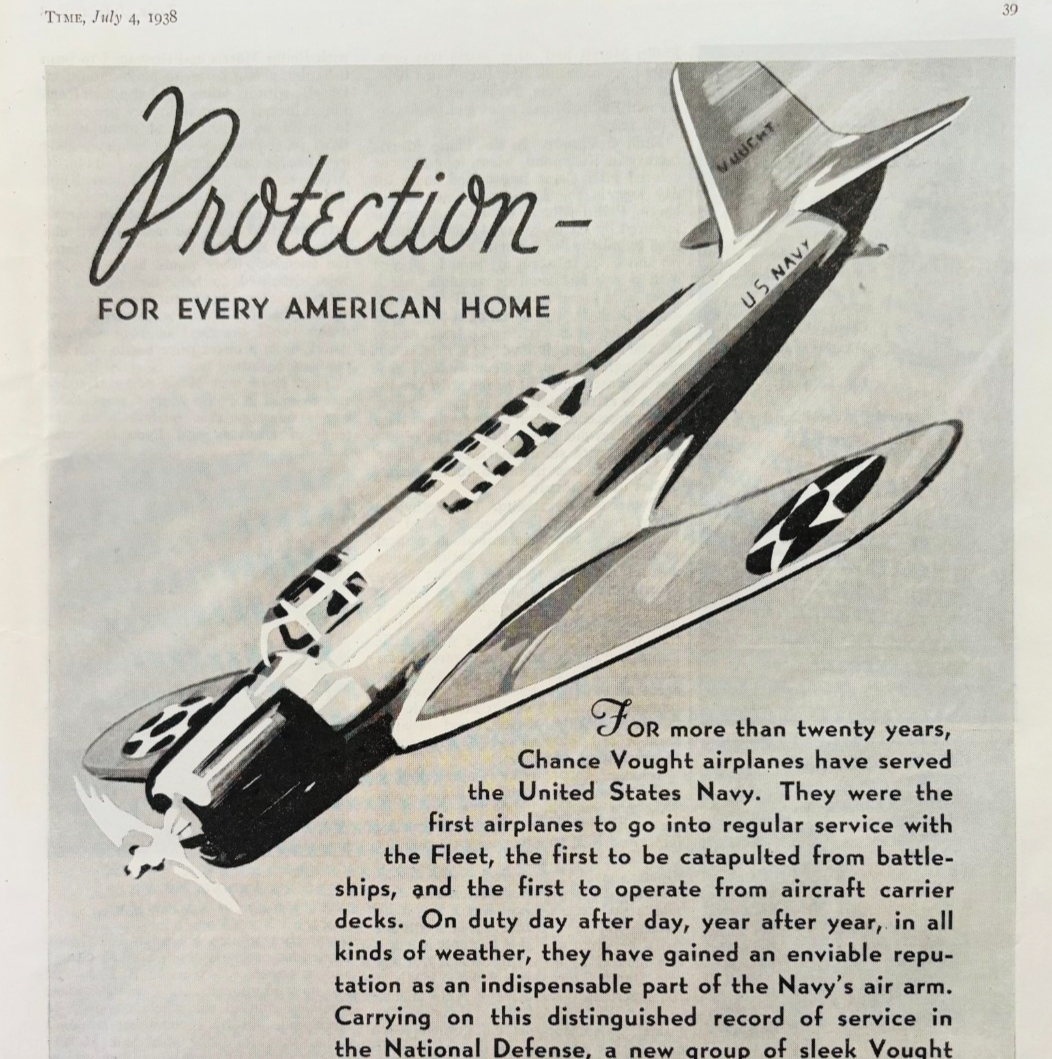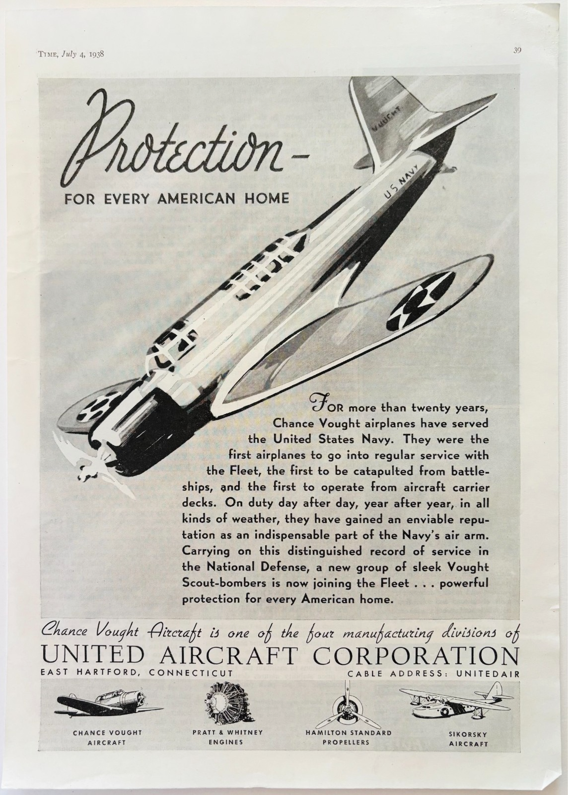 1938 United Aircraft Corporation Advertisement US Navy Aviation Defense E90D1