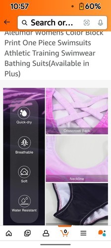 Women's one-piece swimsuit size small. Beautiful purple color. Quick dry material. Cute! Crossed straps on the back. Nice thick material.