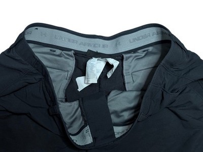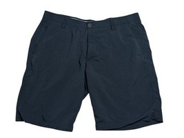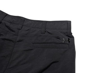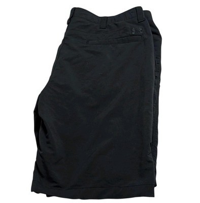 These are men's black Under armor casual shorts. Loose fit size 40. Heat gear technology. Made with a nylon polyester mix. Front pockets and back buttoned Pockets. Super lightweight and breathable. These are in excellent condition!