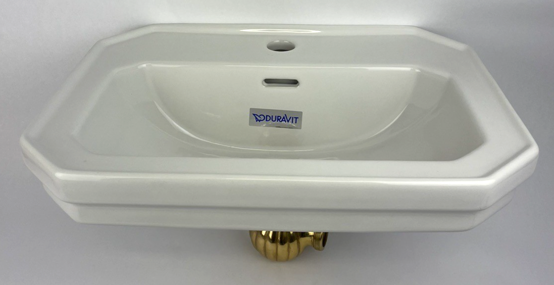 Duravit 785/50 Designer Wall Mount Bathroom Sink White w Gold/ Brass Drain Piece