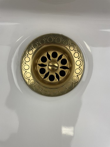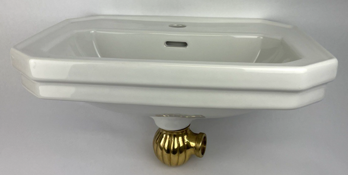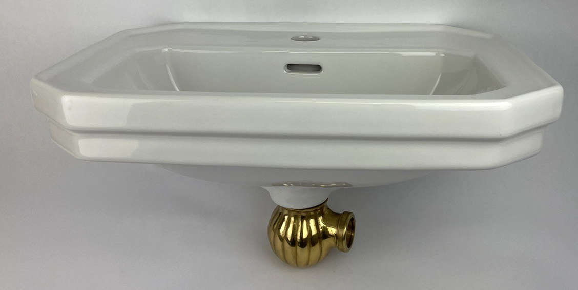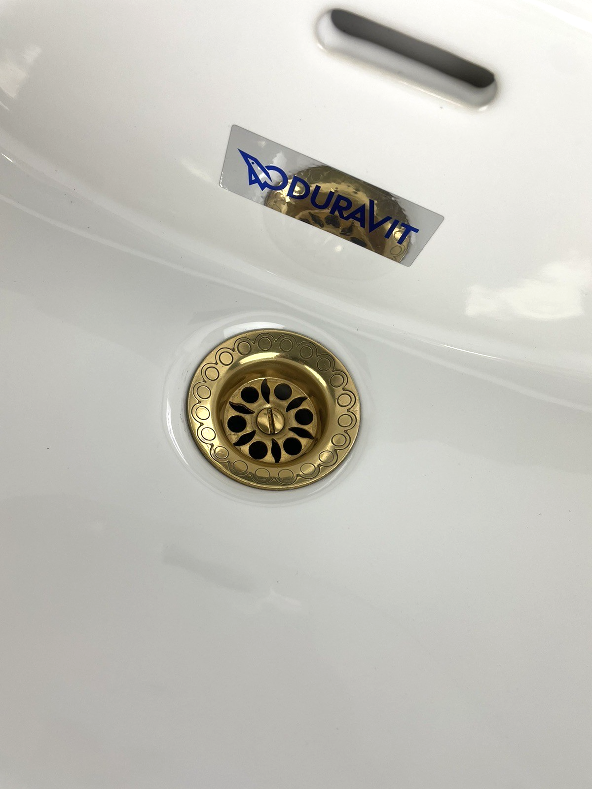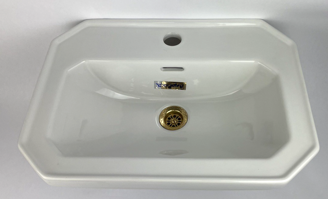 OEM Duravit 785/50 Designer Wall Mount Bathroom Sink Glossy White with Gold/ Brass Drain Strainer Piece