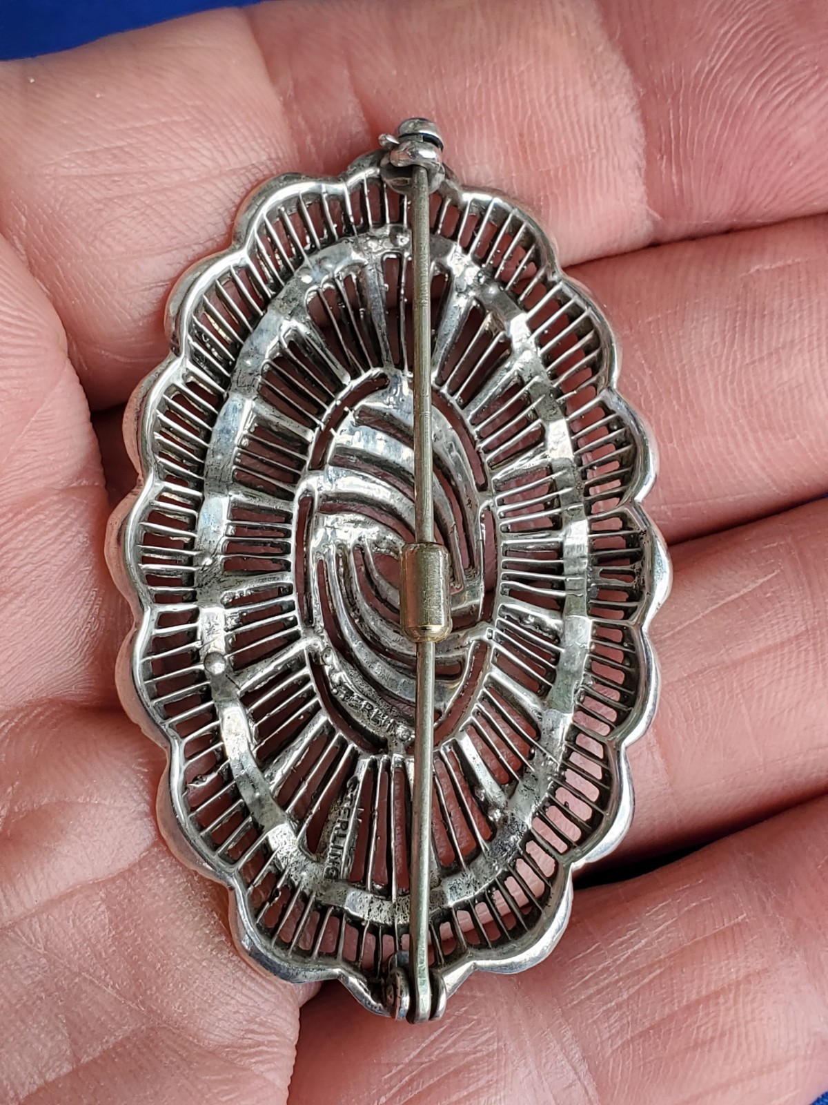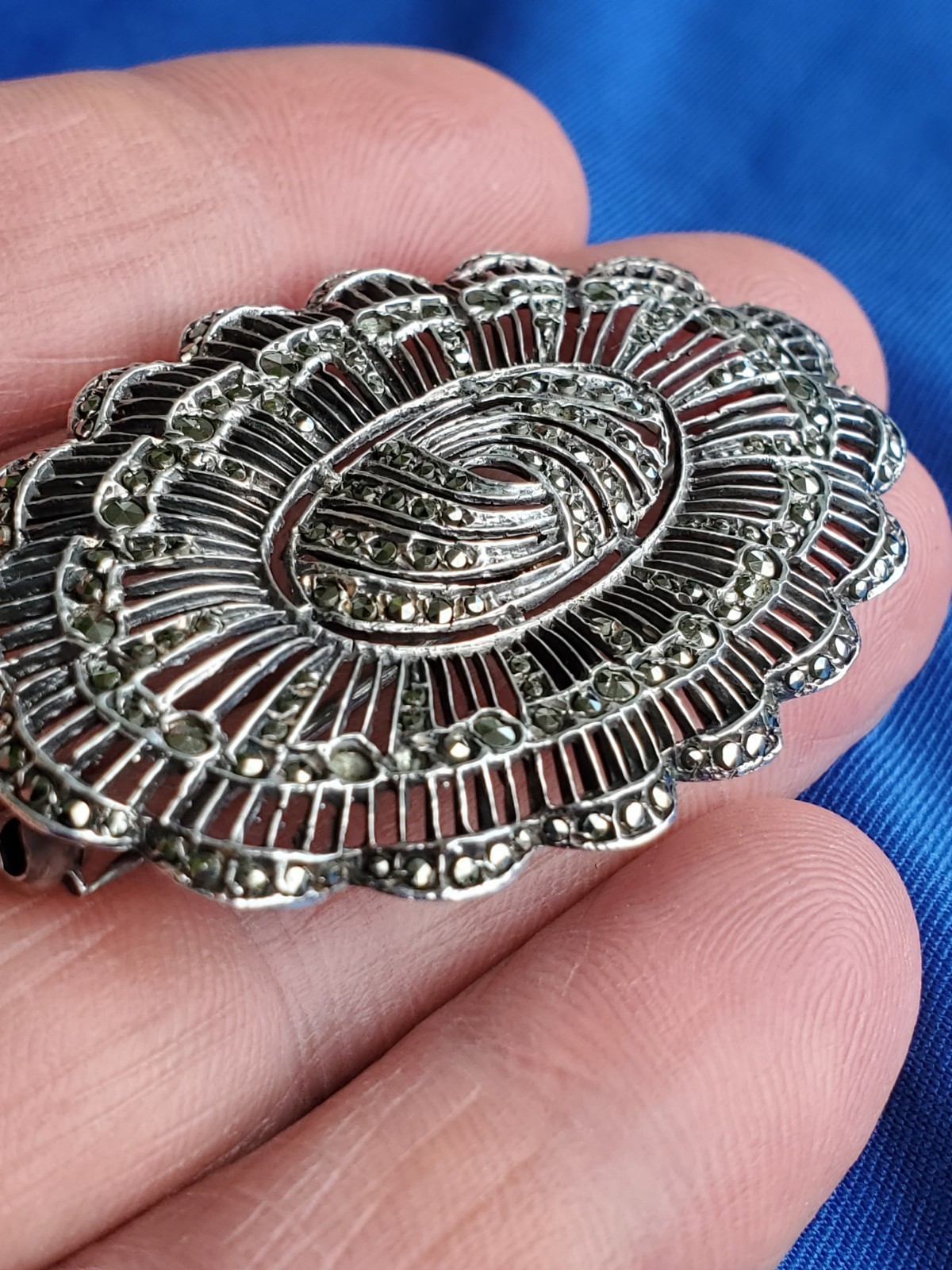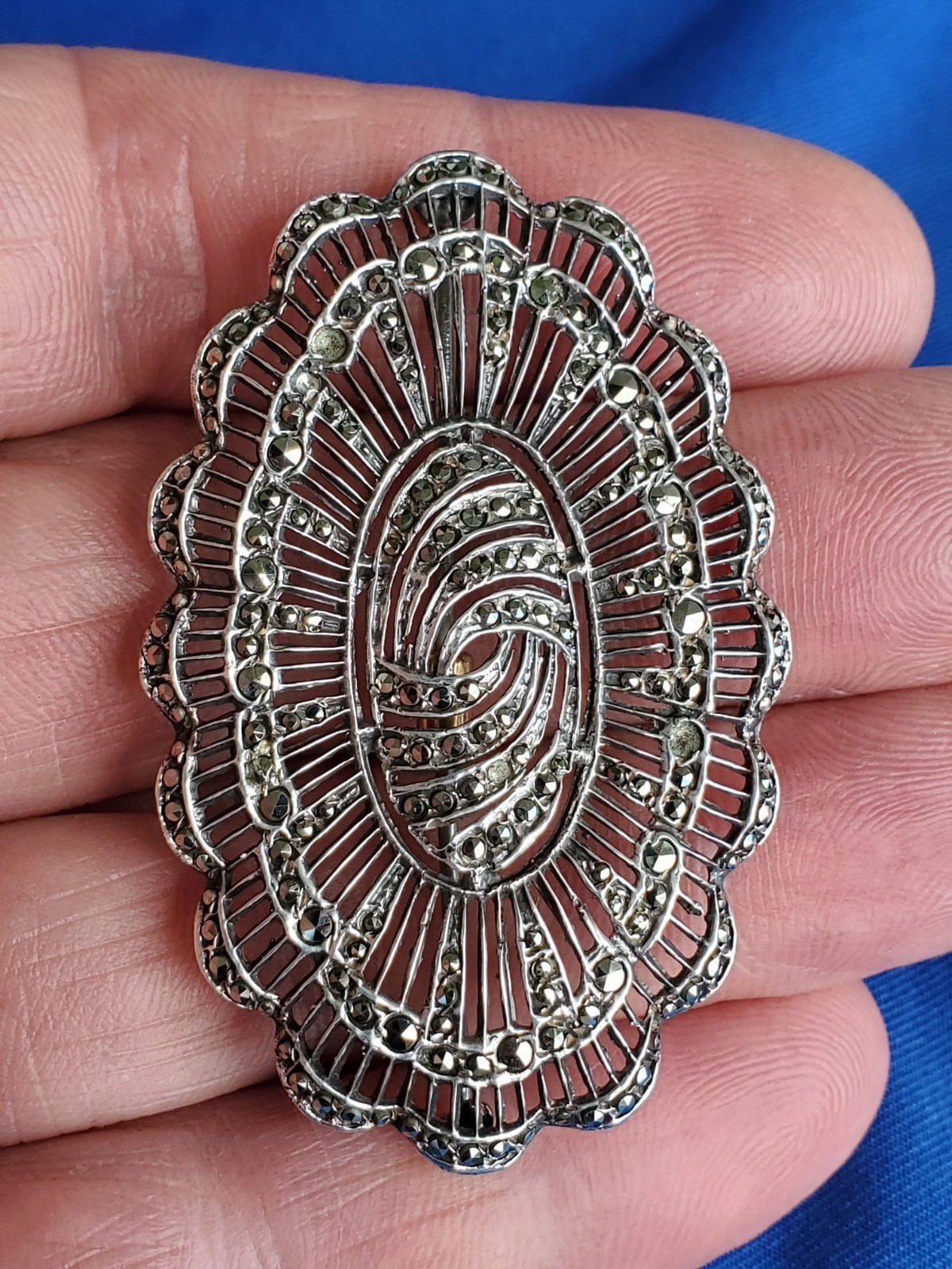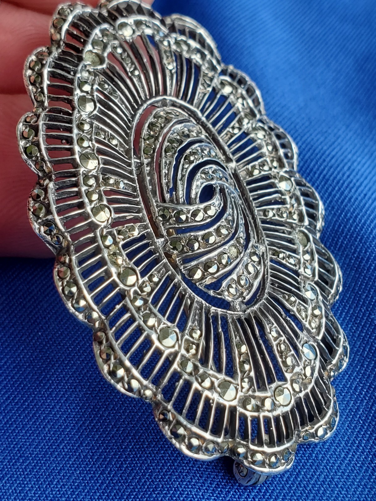 Vintage Art Deco Sterling Silver 925 Diamond Cut Marcasite Large Pin Brooch