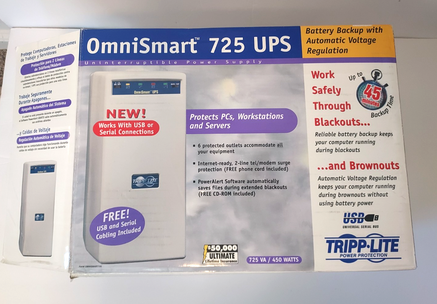An excellent battery backup with automatic voltage regulation. Protects PCs, Workstations, and Servers.