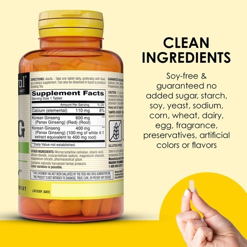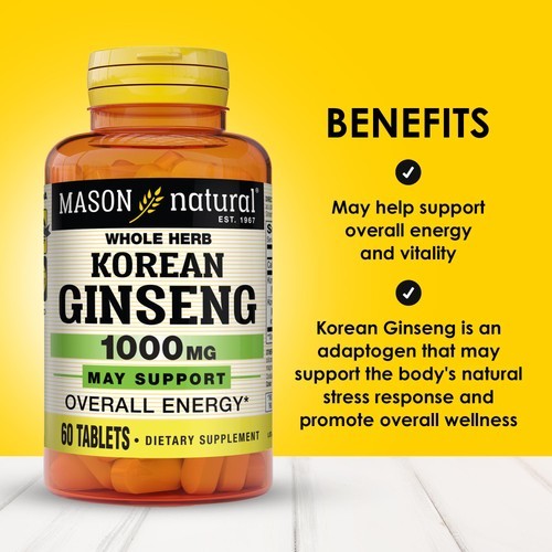 Korean Ginseng, also known as Panax Ginseng, is a natural adaptogen that may help the body adapt to stress support overall wellness. Traditionally used for centuries, it is known for its potential benefits in promoting energy, endurance vitality. Mason Natural Korean Ginseng 1,000 mg provides a convenient way to incorporate this time-tested herb into your daily routine to help maintain general health well-being.