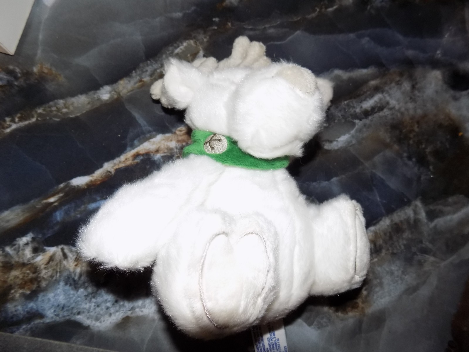 This Bath Body Works 8" Jingles Reindeer with a green collar stuffed animal is a festive addition to your Christmas decor. Made of plush material and featuring a cute mouse design, this small-sized toy is perfect for children ages 3 and up. With its white color and brand detailing, this 2009 collectible is sure to bring joy to both kids and adults during the holiday season. Made in China, this adorable stuffed animal is a charming reminder of the magic of Christmas.