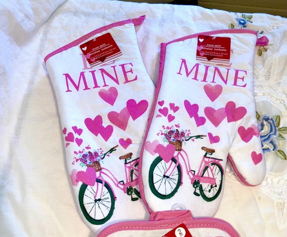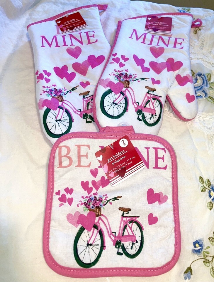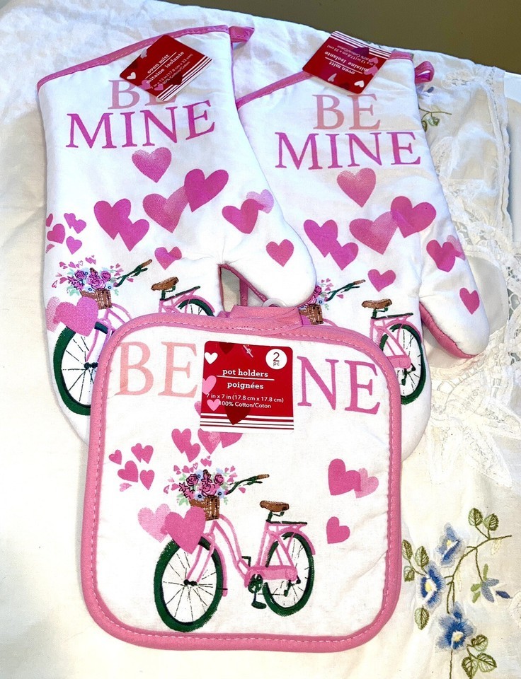 Potholders BE MINE PINK BE MINE Set of 4 VALENTINE'S DAY