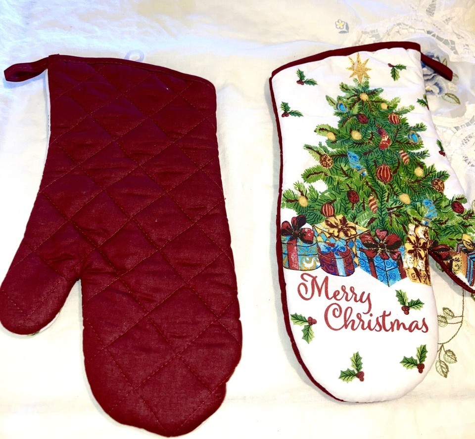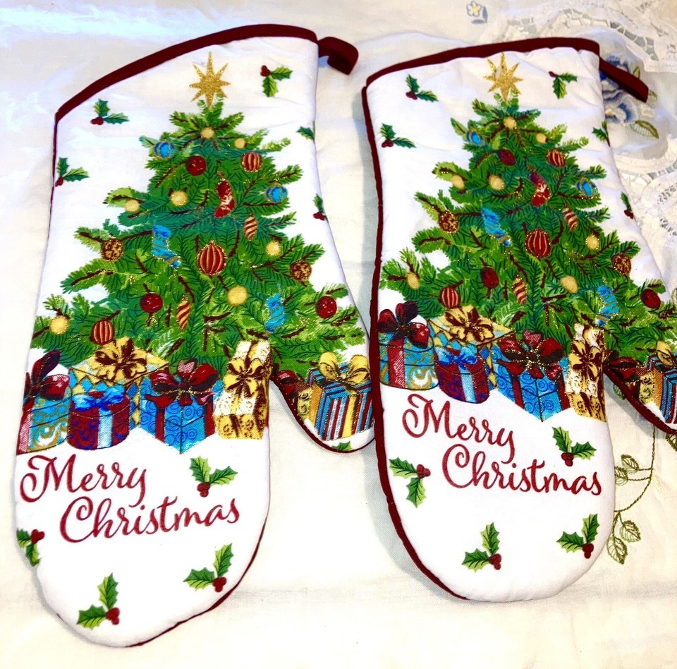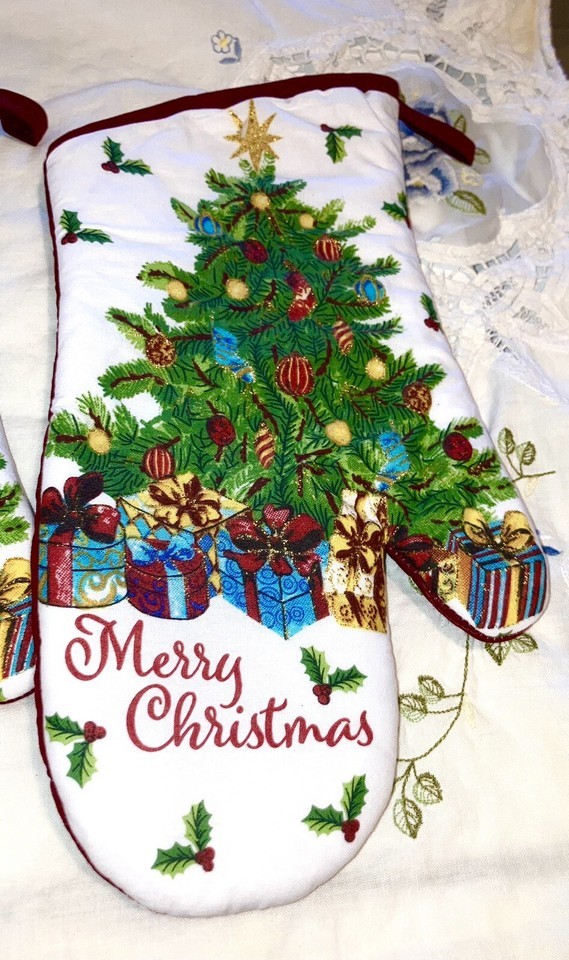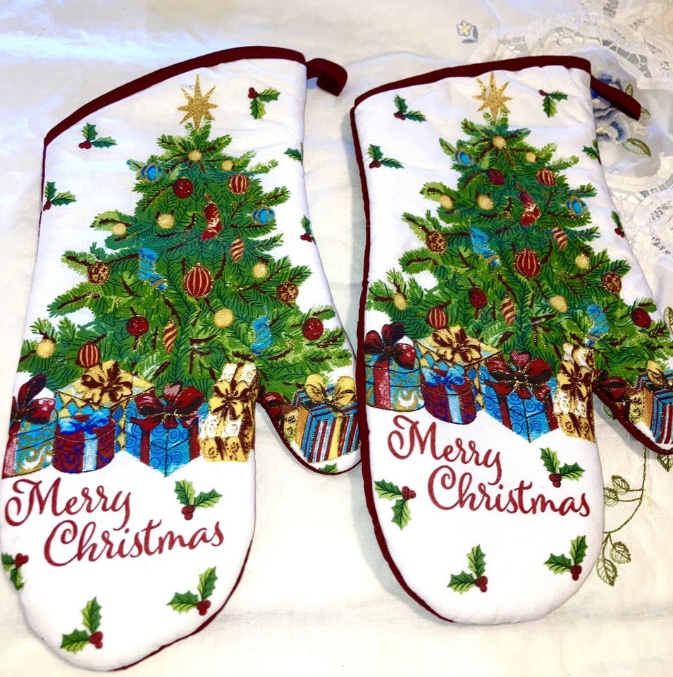 potholders MERRY CHRISTMAS Christmas Tree scene set of 2 CHRISTMAS