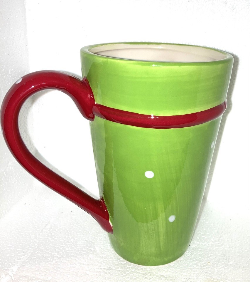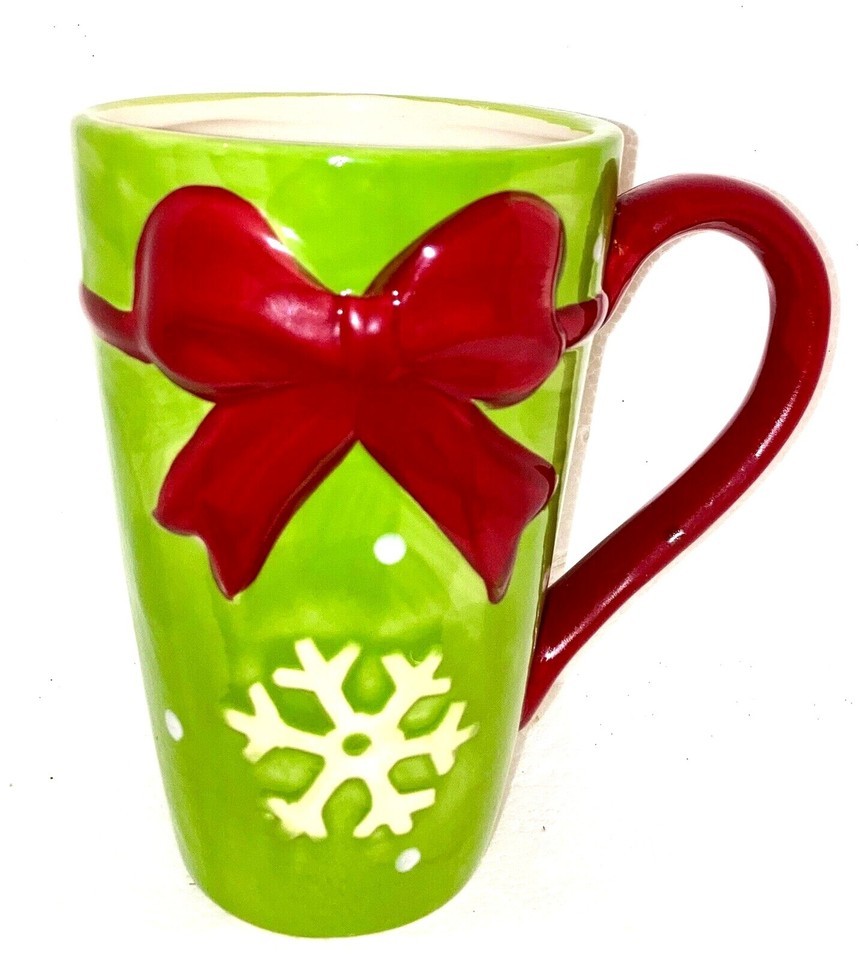 Mug Coffee Or Cocoa Snowflake Bow and Polka Dot Green Red CHRISTMAS