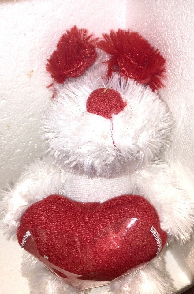 This adorable gift card holder features a white plush puppy dog with a red heart, perfect for all occasions.