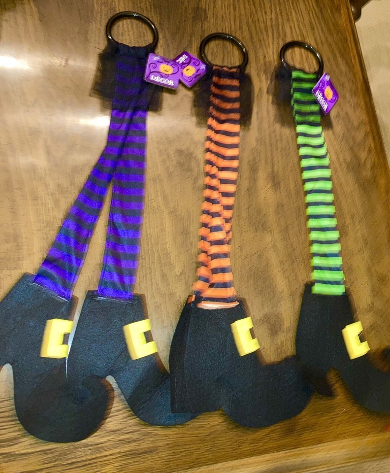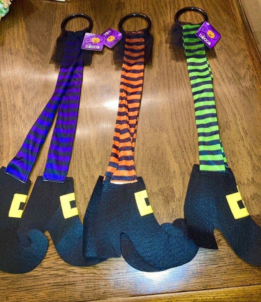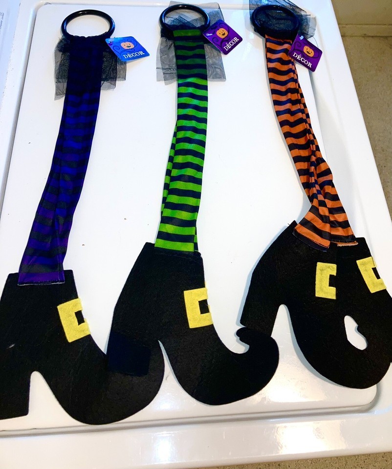 Door Hanger Witches Halloween Decoration Stocking Legs Orange Green Purple